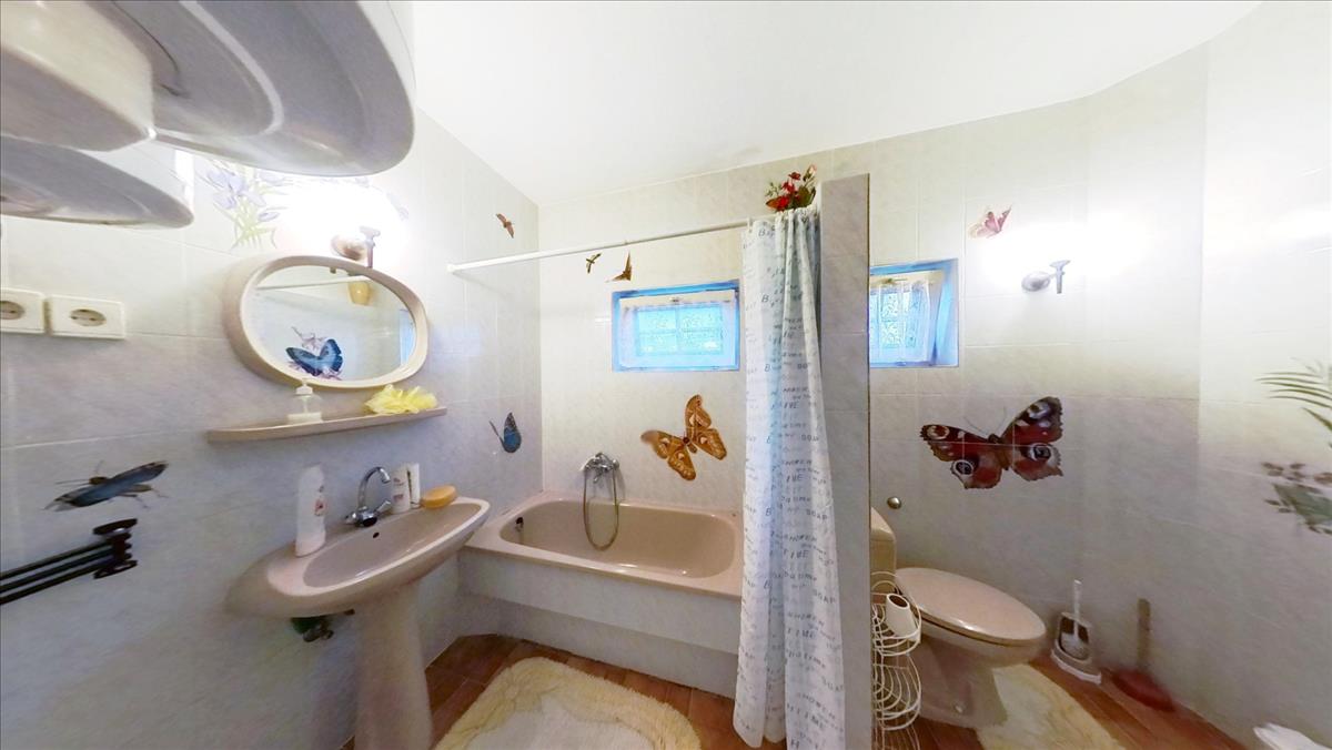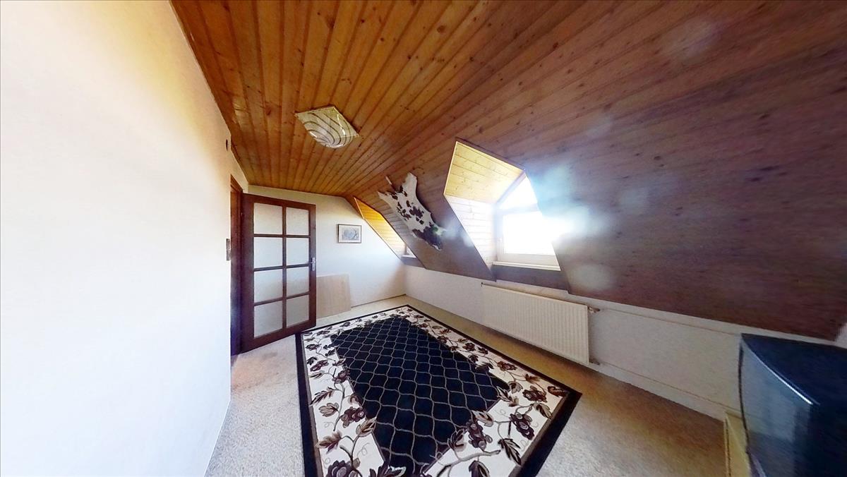 A nappaliból nyílik szintén egy-egy hálószoba a hozzátartozó saját fürdőszobával. Az egyik hálószobát egy nyugati fekvésű erkély egészíti ki. Mindegyik fürdőszobának saját villanybojlere van. a házban még egy lakórész található. Ez egy földszint+tetőtéri lakrész, külön bejárattal. Ezen lakórészből nyílik még egy tetőtéri nyári szoba, amely a maga 20 m2-ével igazán nagyszerű játszó szoba, gyerek kuckó vagy tároló tud lenni.