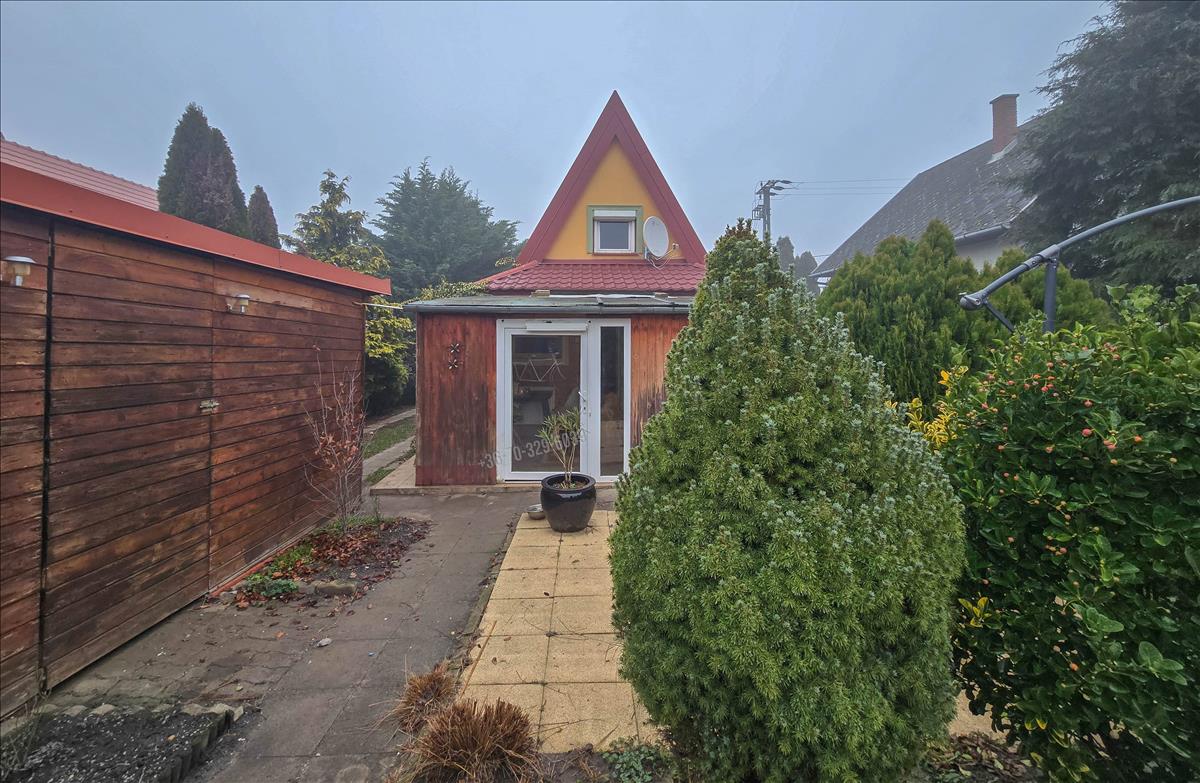 Fertő parti romantikaFertőhomokon, a hegykői termálfürdőtől 5 perc sétára eladó egy 391 nm-es, parkosított telken (eredetileg 1987-ben épült) fa szerkezetű hétvégi ház besorolású, jó állapotú, 2 szintes ingatlan, a telken garázzsal és tárolóval, kis pihenőkerttel.