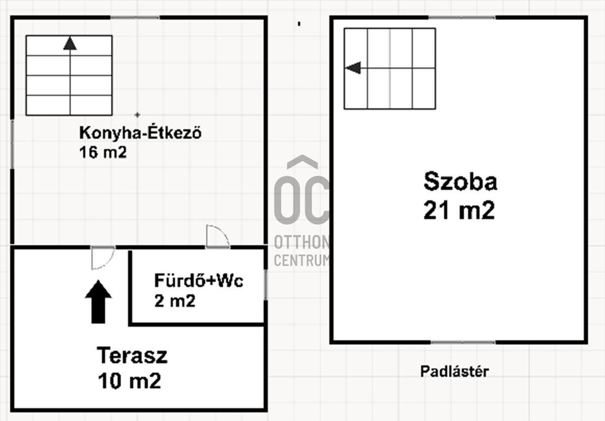 Az emeleti részen egy tágas szoba található, amelyet mérete alapján akár meg is lehet felezni.