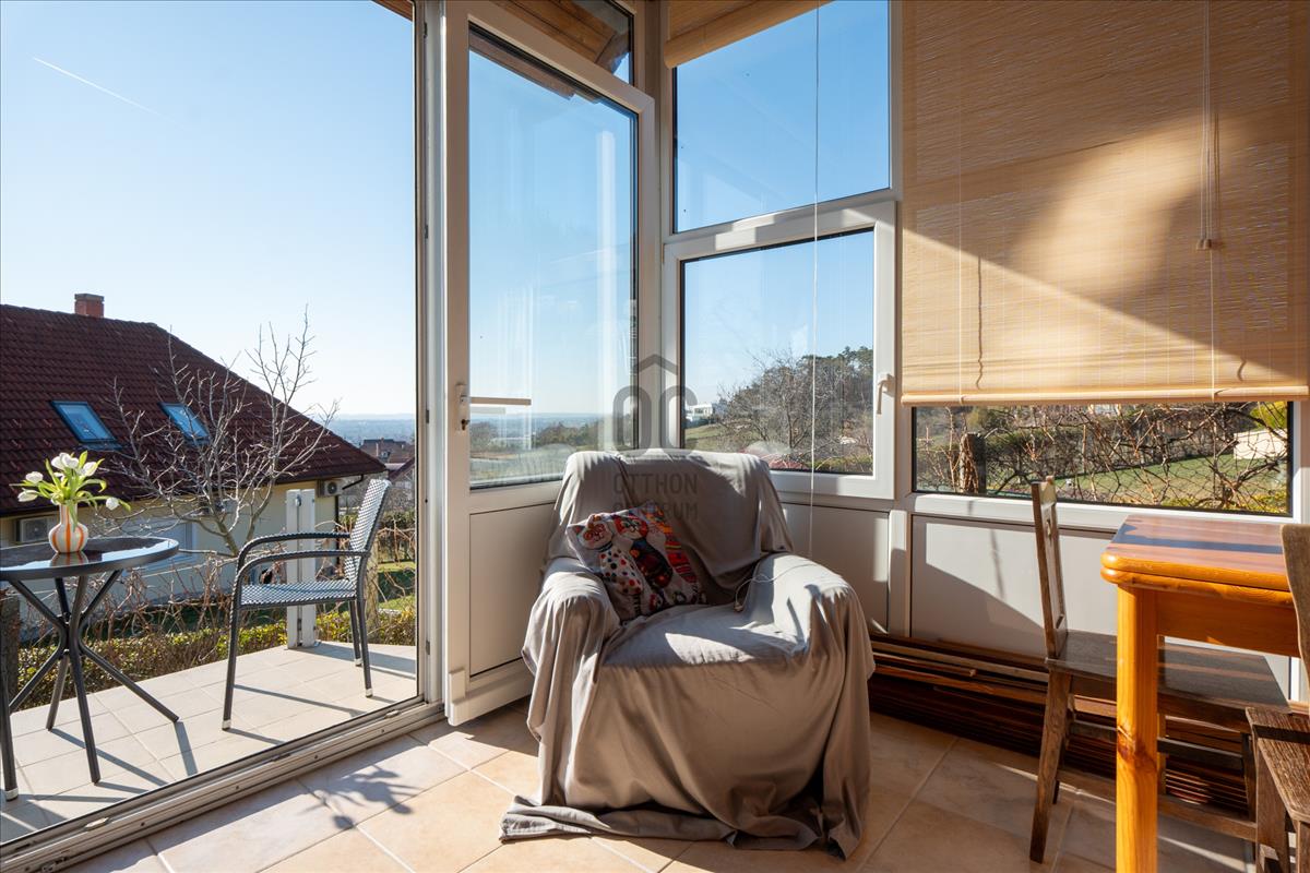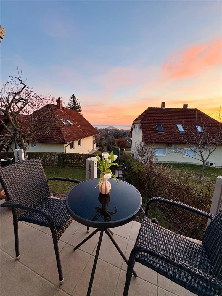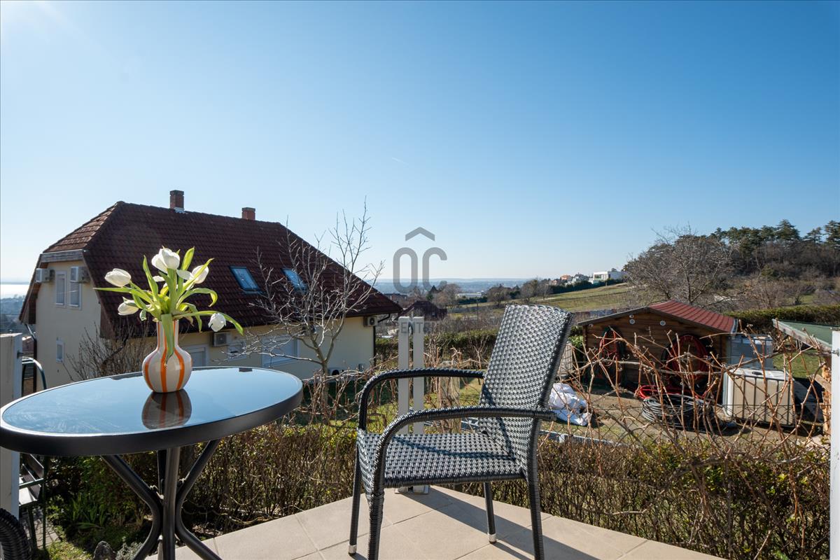 -a telekről és a házból szép panoráma tárul elénk a Balatonra, Keszthelyre, és a szomszédos erdőre-