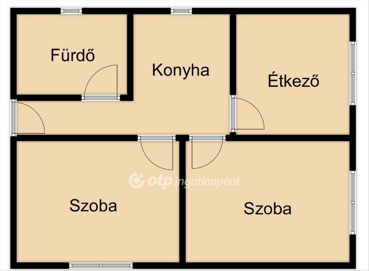 -Földszint 2 szoba, étkező, konyha, fürdő+WC egy helyiségben