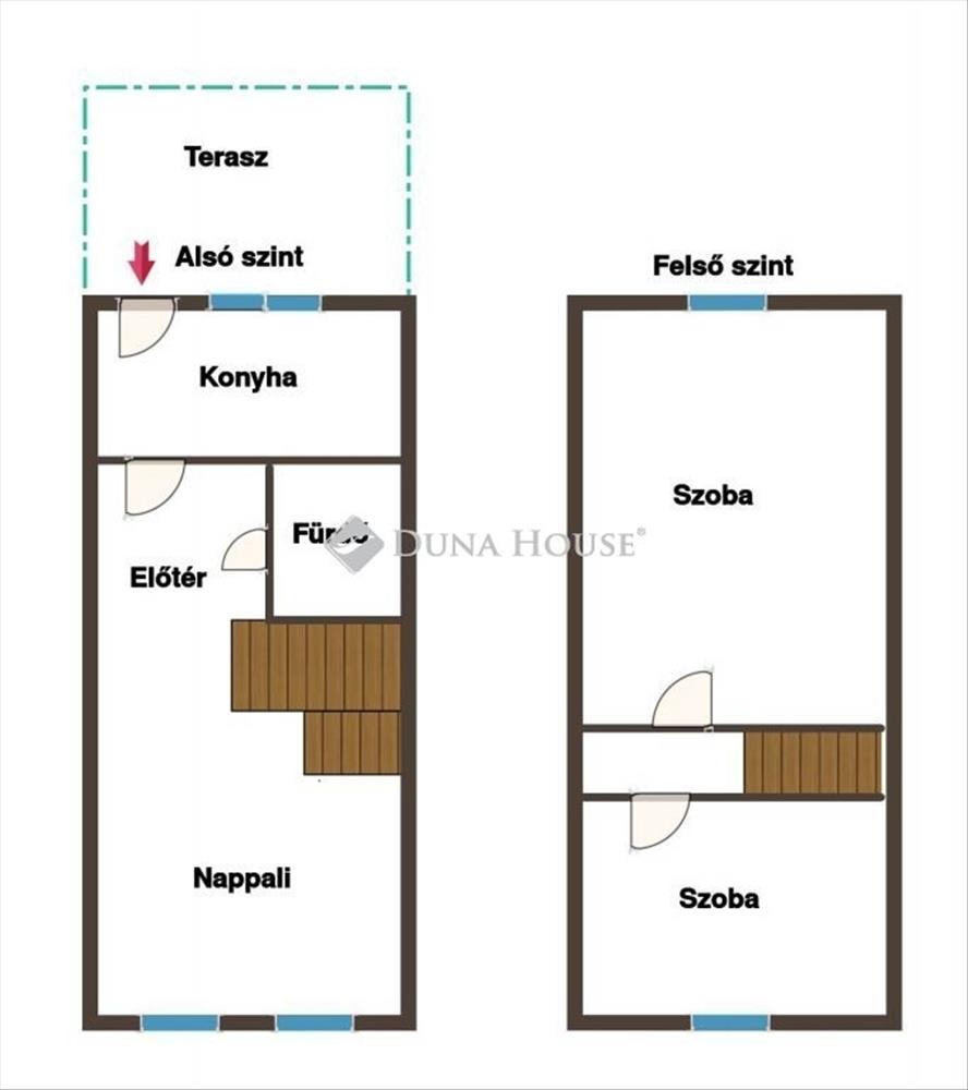 ~ az alsó szinten - nappali, konyha, fürdőszoba, előtér, lépcsőtér ~ a felső szinten