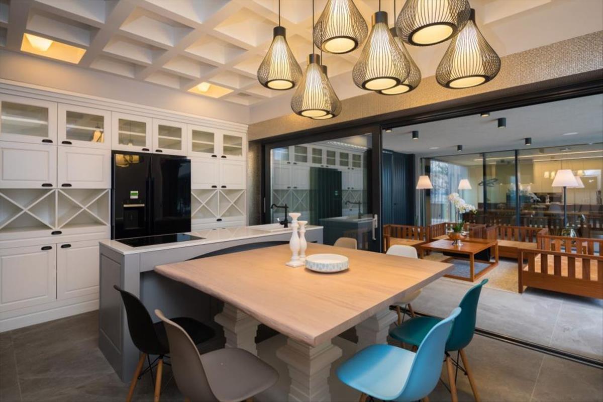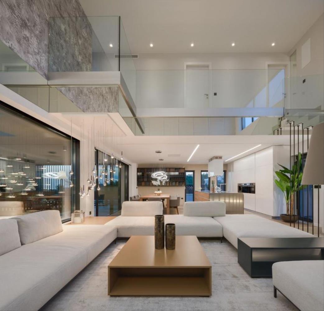 A kivitelezés 2017-2018-ban fejeződött be. Ennek a stílusos, modern villának a belső tere egy pince, földszint és első emelet. a villa minden szintje belső lépcsőn keresztül kapcsolódik egymáshoz. a pincében egy tágas garázs található két autó számára, egy átjáró terület, egy mosókonyha és egy házkarbantartó szoba. Alatta találhatók a spa helyiségek és egy edzőterem, amely közvetlen hozzáféréssel rendelkezik a teraszhoz és a medencéhez. a villa főbejárata a földszinten található. a folyosón végighaladva elérjük a nappalit, amely étkezővel és konyhával közös térként funkcionál. Alatta egy hálószoba található fürdőszobával és hozzáféréssel egy fedett teraszra, majd egy dolgozószoba, egy vendég wc, egy tárolóhelyiség és egy másik fedett terasz. Az első emelet négy hálószobára van osztva, mindegyik saját fürdőszobával és két fedett terasszal. Az egyik a fő szobához tartozik, a másik, jakuzzival, minden hálószobából megközelíthető. Ez a gyönyörű tervezésű villa teljesen felszerelt és bútorozott.