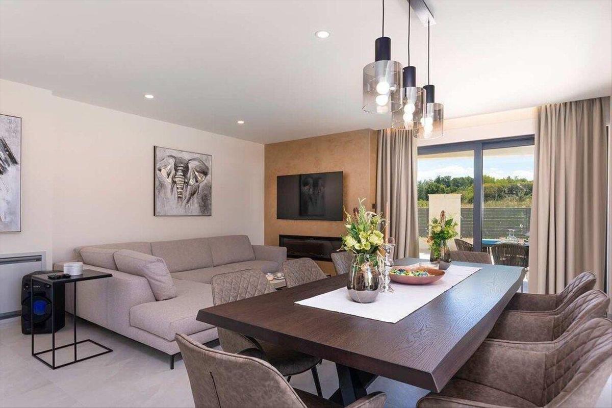 Csak 4 km-re a tengertől és egy rövid autóútra Poreč központjától, ez a prémium modern villa a kortárs luxus ingatlan csúcsát képviseli Isztriában. Körülbelül tíz percre található a gyönyörűen karbantartott strandoktól és körülbelül tizennégy percre a vibráló történelmi központtól, az ingatlan tökéletes kombinációját kínálja a magánéletnek, a hozzáférhetőségnek és a prémium mediterrán életstílusnak az Adriai-tenger partján. Ez az építészeti szempontból figyelemfelkeltő luxus villa azonnal magával ragadja bátor kortárs dizájnjával és innovatív szerkezeti megoldásaival. a ház egyik sarka vizuálisan kinyúlik a medencébe, lenyűgöző végtelen hatást teremtve, és zökkenőmentes átmenetet biztosítva a belső és külső terek között. Egy külső lépcső vezet a felső emeleti teraszra, míg az ingatlan fénypontja a lenyűgöző 75 m²-es tetőterasz. Ez a privát tetői oázis panorámás tengeri kilátással rendelkezik, jacuzzi, elegáns lounge ülőhelyek és napozóágyak találhatók rajta, így minden naplementét felejthetetlen élménnyé varázsol. a villa 153 m² nettó lakóterületet kínál, amely két teljesen légkondicionált emeleten oszlik el, kiegészítve a tágas tetőterasszal. a földszint egy előszobával és egy kijelölt gardrób területtel fogad, amely egy kifinomult, nyitott alaprajzú lakótérbe vezet, amely a modern „nyitott tér” elvek szerint készült. a tágas nappali, a teljesen felszerelt modern konyha és az elegáns étkező harmonikusan olvadnak össze, ideális környezetet teremtve a családi élethez és a vendégek szórakoztatásához. a nagy üveg tolófalak megszüntetik a határt a beltéri és kültéri területek között, lehetővé téve a bőséges természetes fényt a nap folyamán, és közvetlen hozzáférést biztosítanak a tájolt kerthez, amely medencével rendelkezik. Az estéket egy kifinomult légkör jellemzi, amelyet a hangulatvilágítás és a víz tükröződése fokoz. a belső lépcső az első emeletre vezet, ahol három kényelmes hálószoba található. a fő hálószoba saját fürdőszobával rendelkezik, míg a másik két hálószoba egy gyönyörűen megtervezett fürdőszobát oszt meg a folyosón. Minden szoba a kortárs dizájnt, kényelmet és funkcionalitást tükrözi, világos és szellős lakókörnyezetet kínálva. a teljesen kerített 620 m²-es privát telken elhelyezkedő ingatlan külseje egy exkluzív mediterrán menedékként lett megtervezve. a kert középpontjában egy 50 m²-es kültéri medence áll, amelyet napozóágyakkal és egy tájolt gyep területtel körülvett napozóhely vesz körül. Egy fedett terasz kültéri kandallóval és étkezőasztallal tökéletes helyszínt biztosít a nyári összejövetelekhez, szabadtéri étkezésekhez és a pihentető estéhez az isztriai ég alatt. Az ingatlan biztonságos parkolási lehetőséget is kínál két jármű számára a zárt udvarban. Ez a modern villa Porečben szinte minden szobában padlófűtéssel, minden szobában fűtésre és hűtésre alkalmas ventilátoros klímaberendezésekkel, kiváló minőségű pvc nyílászárókkal szúnyoghálóval és 10 cm-es homlokzati szigeteléssel van felszerelve, biztosítva a kiváló energiahatékonyságot és az egész évben tartó kényelmet. Prémium anyagokból és modern építési szabványok szerint épült, az ingatlan tiszta tulajdonjoggal rendelkezik, egyetlen magánszemély birtokában van, és minden szükséges dokumentáció rendben van, tehermentesen. Egy csendes lakóövezetben található, közel a tengerhez és minden alapvető szolgáltatáshoz, ez a villa ritka egyensúlyt kínál a nyugalom és a városi élet közelsége között. Poreč a horvát Adria egyik legkeresettebb úti célja, gazdag kulturális örökségével, luxus turisztikai infrastruktúrájával, kikötőjével, ínycsiklandó éttermeivel és vibráló életstílusával, ami tovább növeli ennek a kivételes ingatlannak az értékét. Különleges építészete, prémium felszereltsége, tengerre néző tetőterasza jacuzzival és a Poreč strandjaihoz közeli, rendkívül keresett elhelyezkedése miatt ez a villa kiemelkedő lehetőséget képvisel egy biztonságos és kényelmes családi otthonra, valamint egy magas színvonalú befektetési ingatlanra Horvátországban, erős bérleti potenciállal és vonzó megtérüléssel. További információkért, részletes specifikációkért, vagy a Porečben található exkluzív tengerre néző villa privát megtekintésének megszervezéséhez, bármikor keressen minket bizalommal. Ref: RE-U-45753