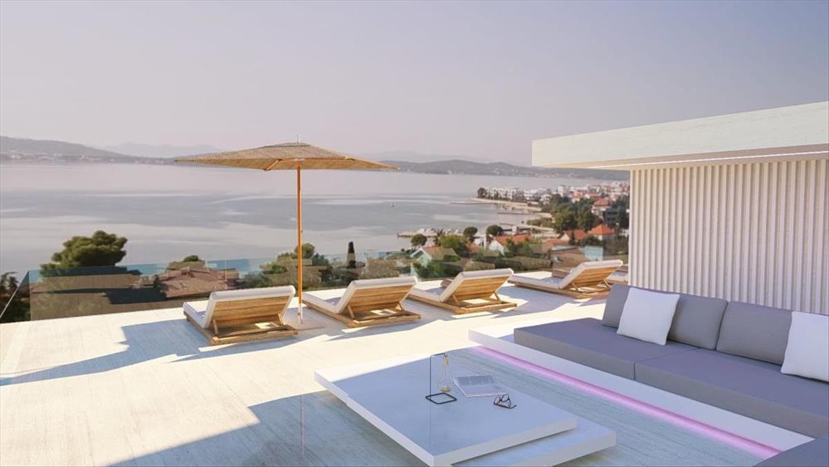 Ennek a villának a koronaékköve a tágas tetőterasz úszómedencével, ahonnan lenyűgöző panorámás kilátás nyílik a tengerre, ami páratlan luxus- és szabadságérzetet kelt.