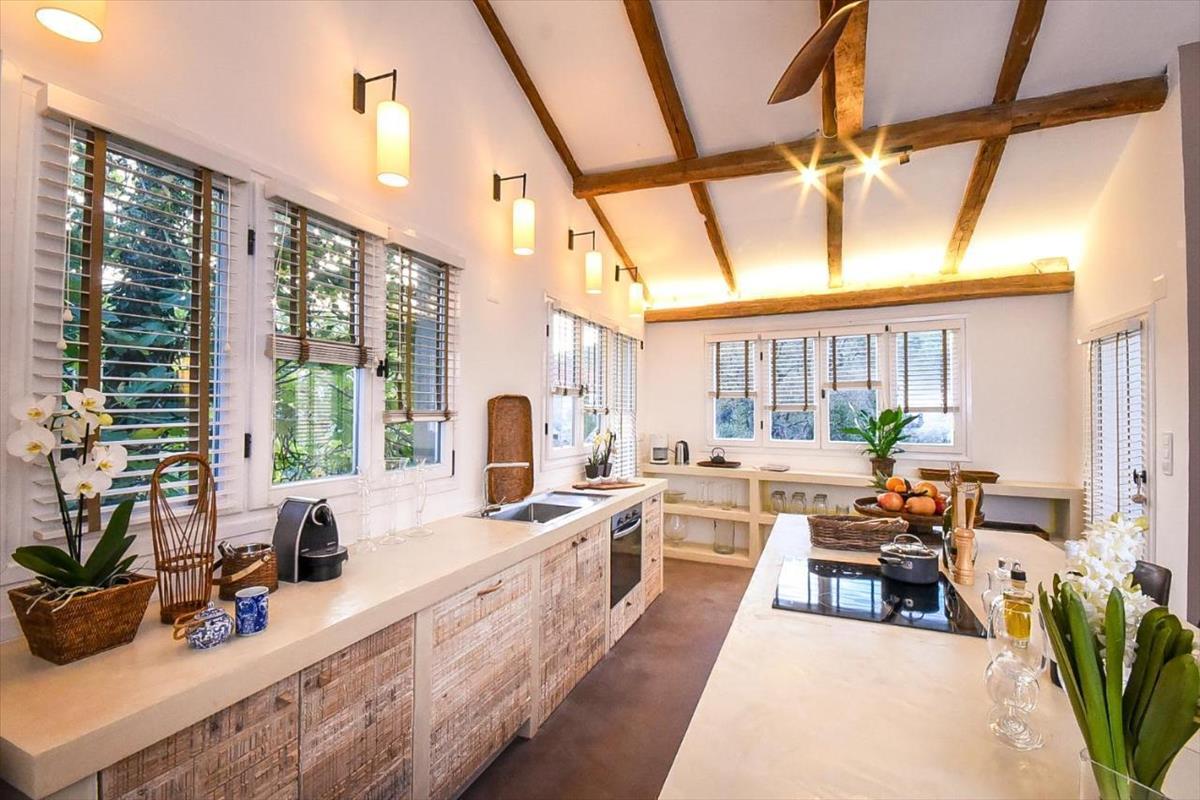 A villa tágas, kéményes szalonnal, gyönyörű étkezővel, nagy konyhával, négy hálószobával, három fürdőszobával, dolgozószobával, mosdószobával, fantasztikus szabadtéri pavilonokkal és teraszokkal rendelkezik.