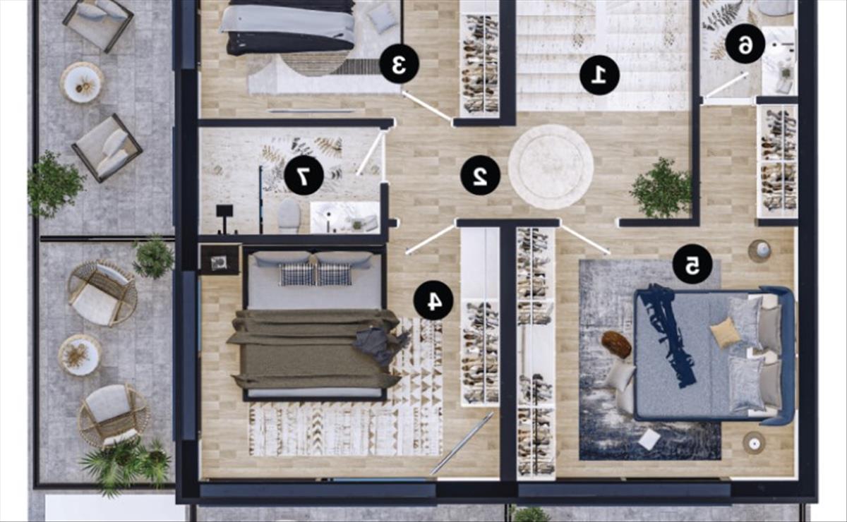 Az első emeleten 3 varázslatos hálószoba vár, mindegyik saját luxus fürdőszobával, biztosítva az intimitást és kényelmet az egész család számára. Minden szoba gondosan megtervezett, hogy maximális kényelmet nyújtson, és csendes sarkot kínáljon a pihenéshez és kikapcsolódáshoz.
