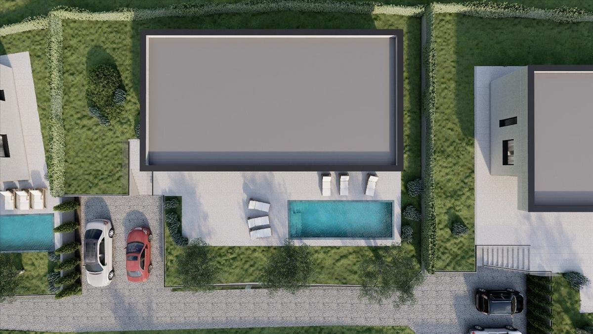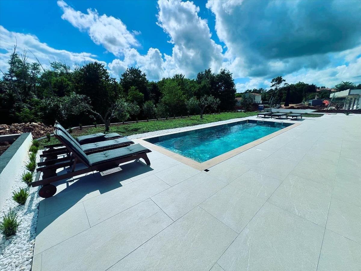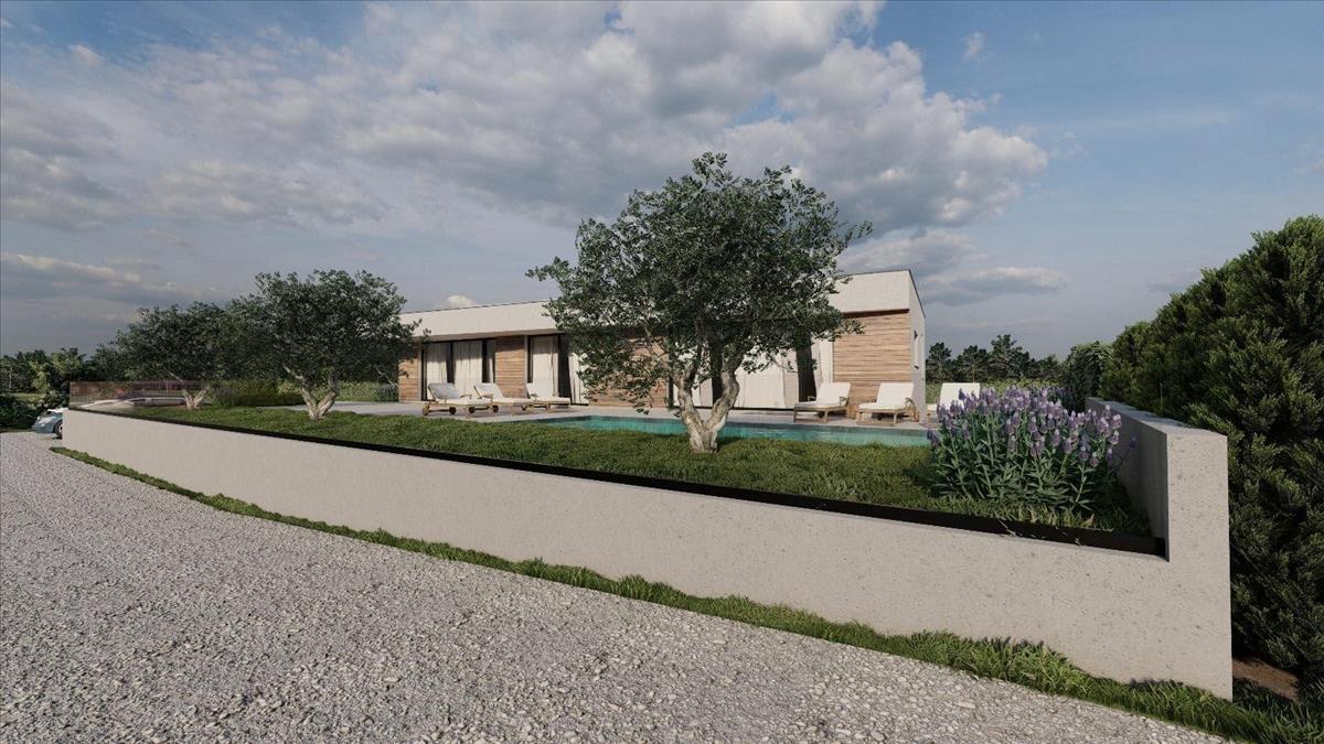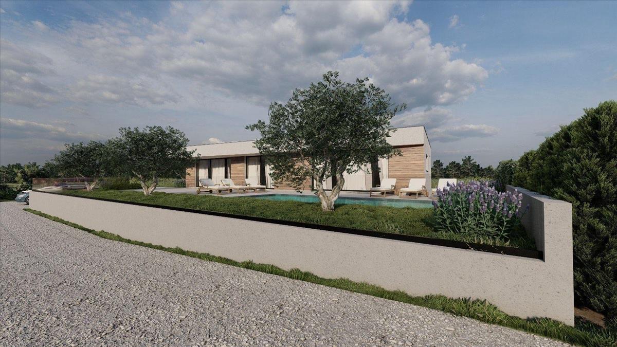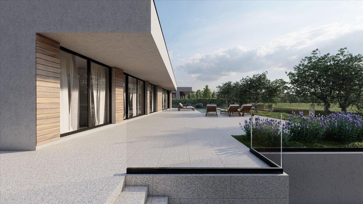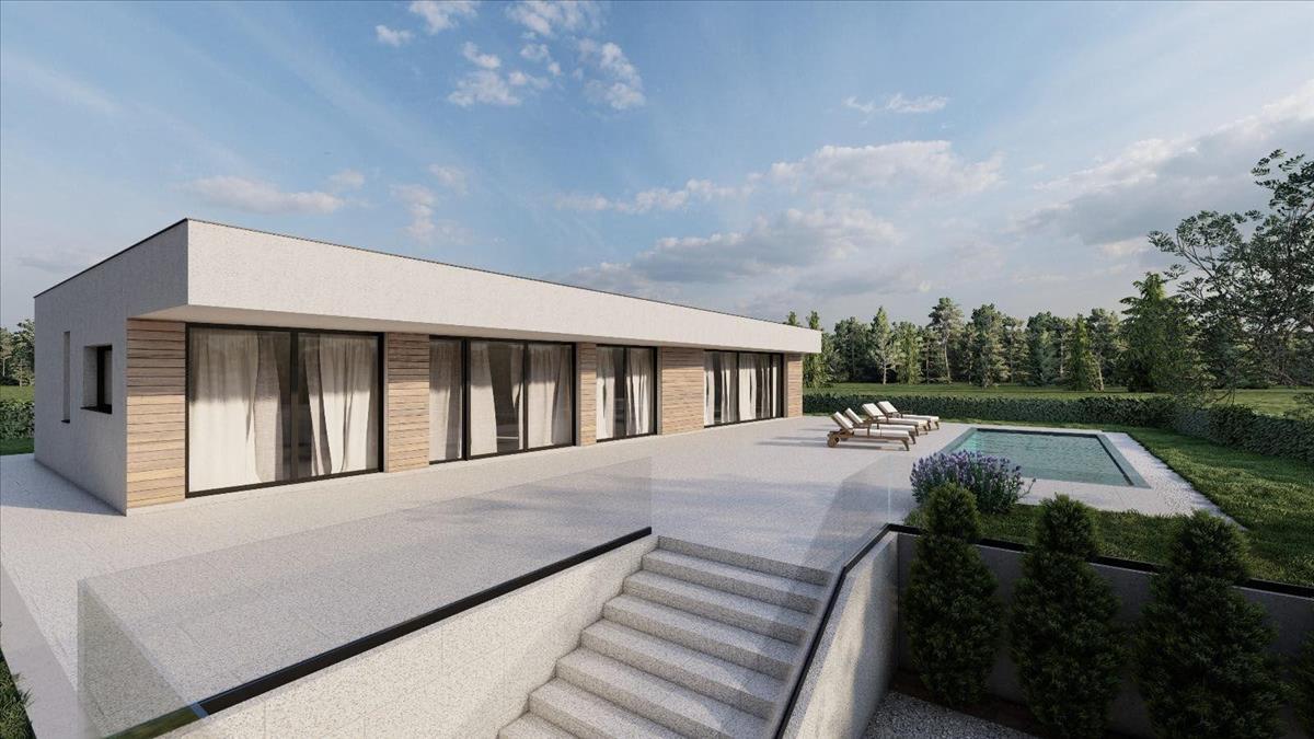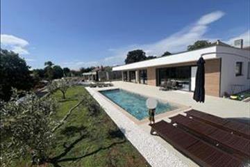Labin város közelében eladó egy tágas, modern ház medencével. a családi házakkal és nyaralókkal körülvett, csendes környéken, a fejlesztési övezet szélén található a ház nyugodt kilátást nyújt a környező növényzetre.