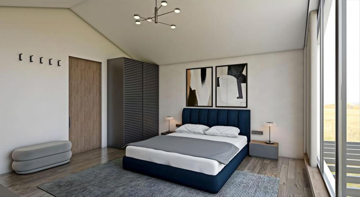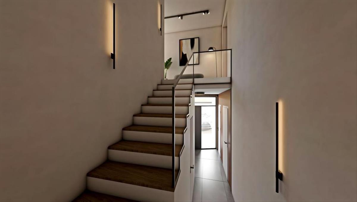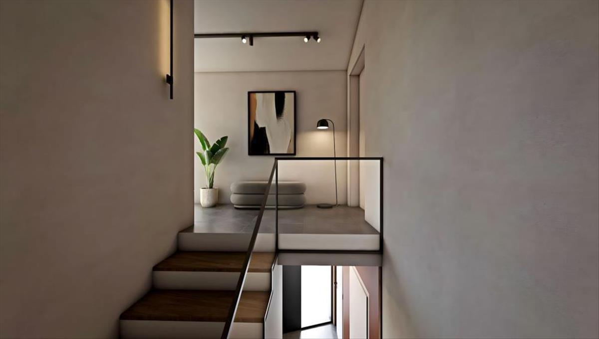 A villa egyetlen lakóegységként készült, két emeleten: a földszinten és az első emeleten. a földszinten található a konyhát, étkezőt és nappalit integráló nyitott elrendezésű tér, ahonnan ki lehet jutni a pergolával fedett teraszra, vendég wc, mosókonyha és technikai helyiség.