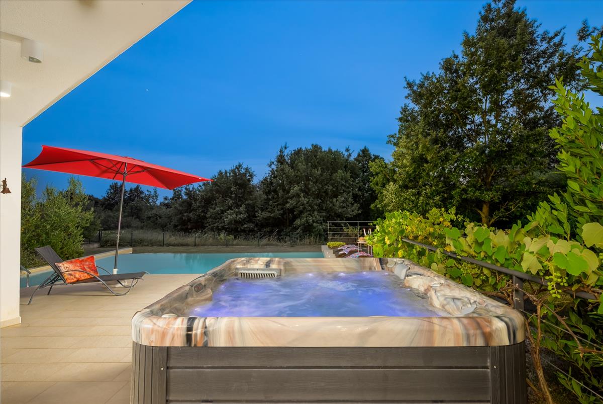Modern villa romantikus Svetvincenatban, Pula és Rovinj között, Közép-Istria szívében eladó!Eladó egy modern stílusban épült, 180 m² alapterületű, egy szintes villa, 1000 m²-es telken.