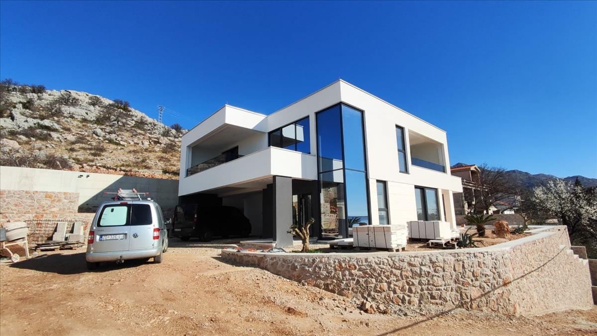 Modern villa úszómedencével, második sorban a tenger felé, panorámás kilátással a tengerre, 60 méterre a tengertől! Ez a modern luxusvilla 180 nm-es. 864 Nm-es telken. Úszómedencével és lélegzetelállító tengerre néző kilátással a tökéletes kényelmet és kifinomult életmódot kínálja.