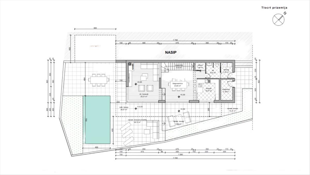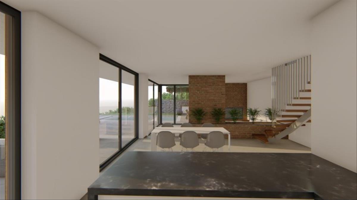 A villa földszintje egy hatalmas nyitott teret foglal magában, ahol a konyha és az étkező egy jól szellőző nappalival fut össze. Egy praktikus mosókonyha, egy kényelmes kamra és egy wc is szolgálja a napi szükségleteket. De ennek a lakhelynek az igazi gyöngyszeme a tágas terasz, ahol egy fűtött medence található, amely társasági összejövetelekre, kikapcsolódásra és teljes nyugalomra hív.
