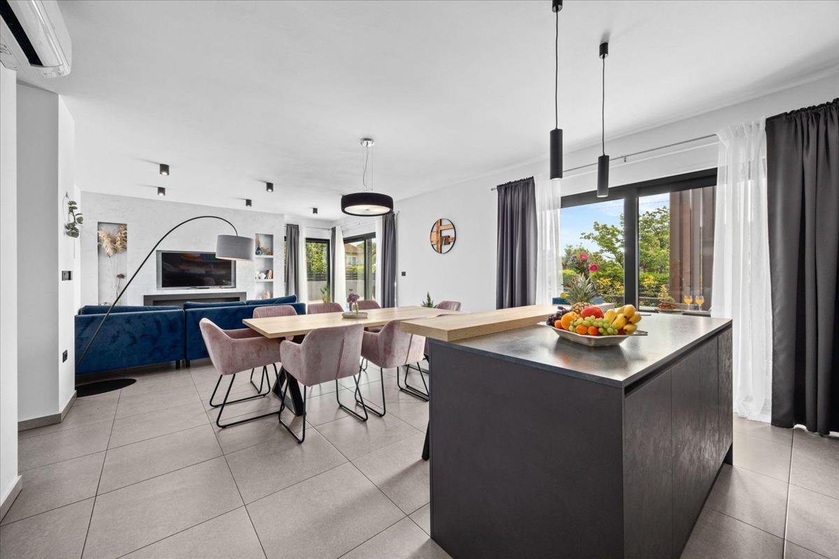 Örömmel mutatjuk be ezt a gyönyörű, modern villát, amely egy nyugodt településen található, amely minden szükségeset kínál a biztonságos és nyugodt életvitelhez egész évben. Ez a villa egy csendes utcában található, mégis közel a falu központjához, és csak egy rövid autóútra található a türkizkék vizű természetes strandoktól. a modern luxust a családi kényelemmel és az egyszerűséggel ötvöző villa egyedülálló életélményt ígér, amely első látásra biztosan magával ragad. Ragadja meg a lehetőséget, hogy birtokba vegye ezt az első osztályú villát, amely minden bizonnyal minden várakozását felülmúlja!