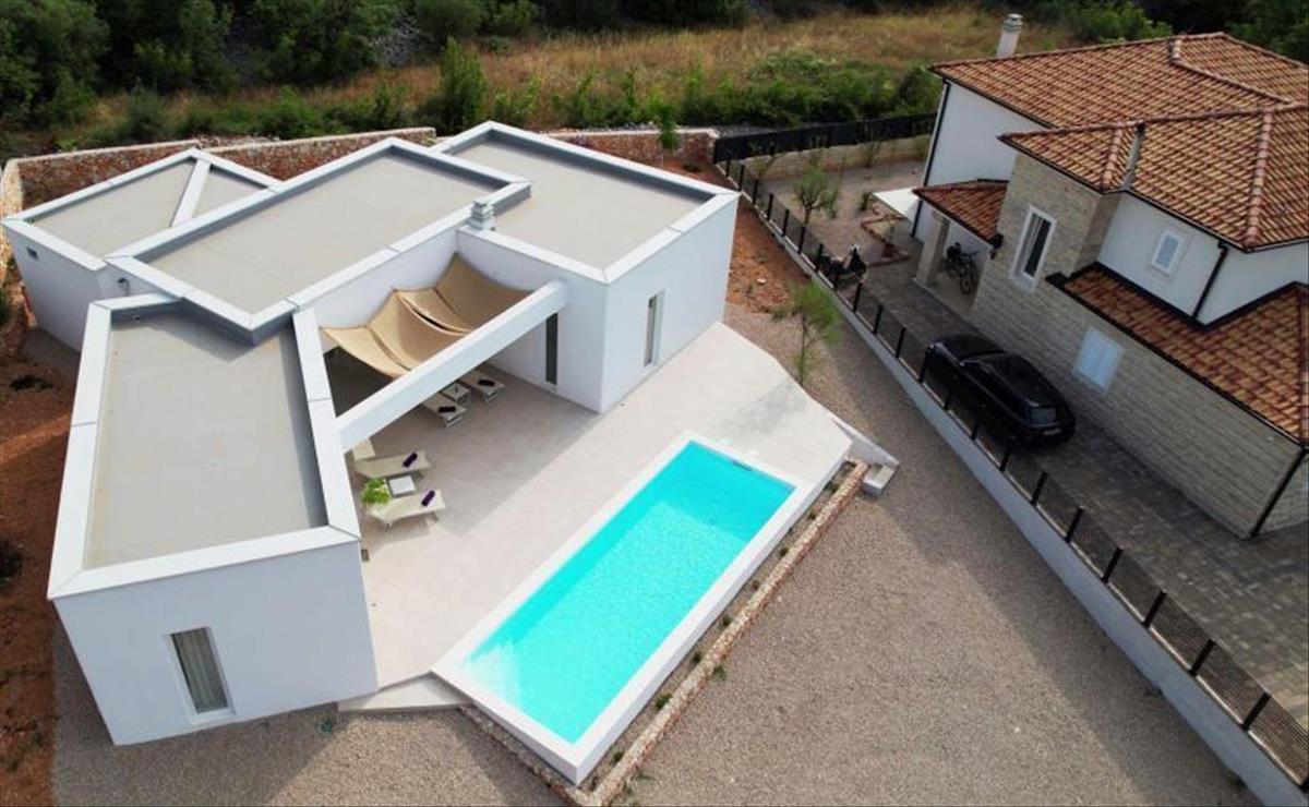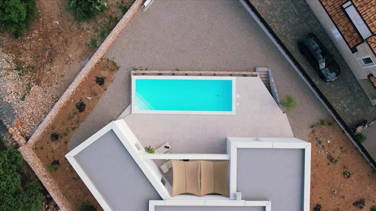Luxus, modern villa medencére és tengerre néző kilátással Krk városának tágabb részén, mindössze 1 km-re a tengertől!