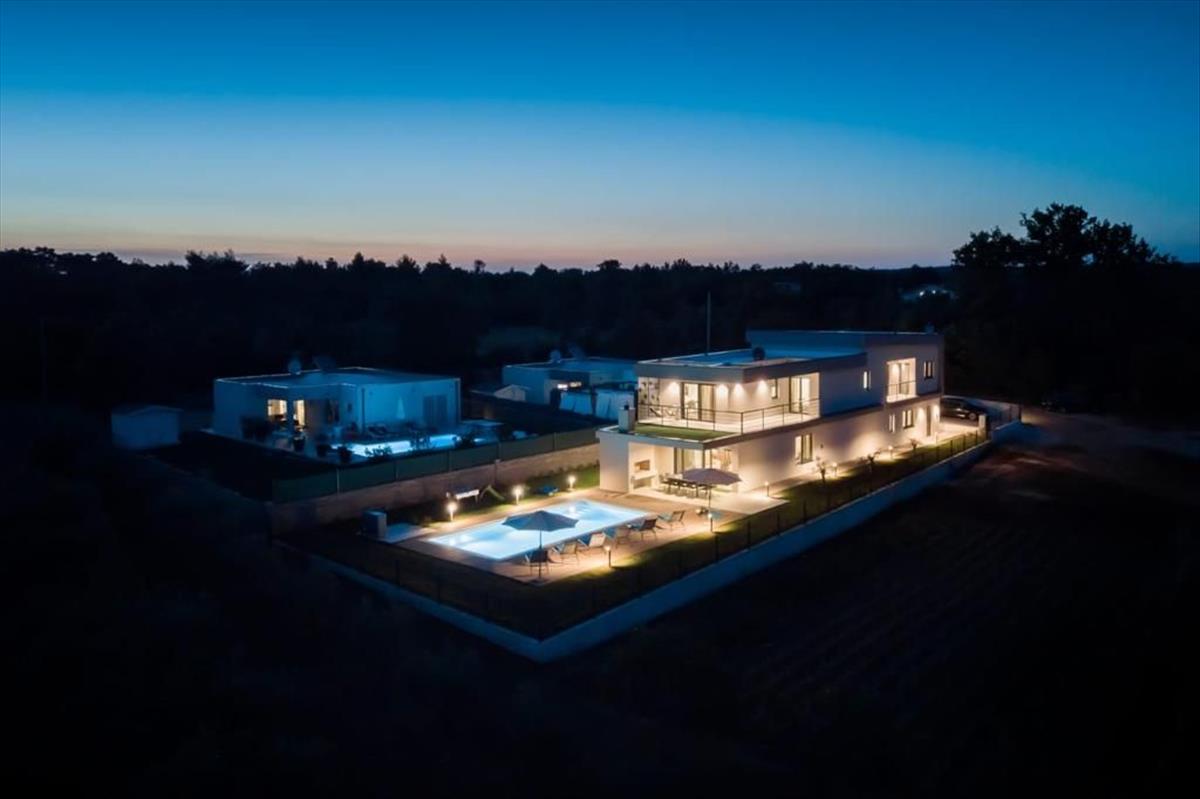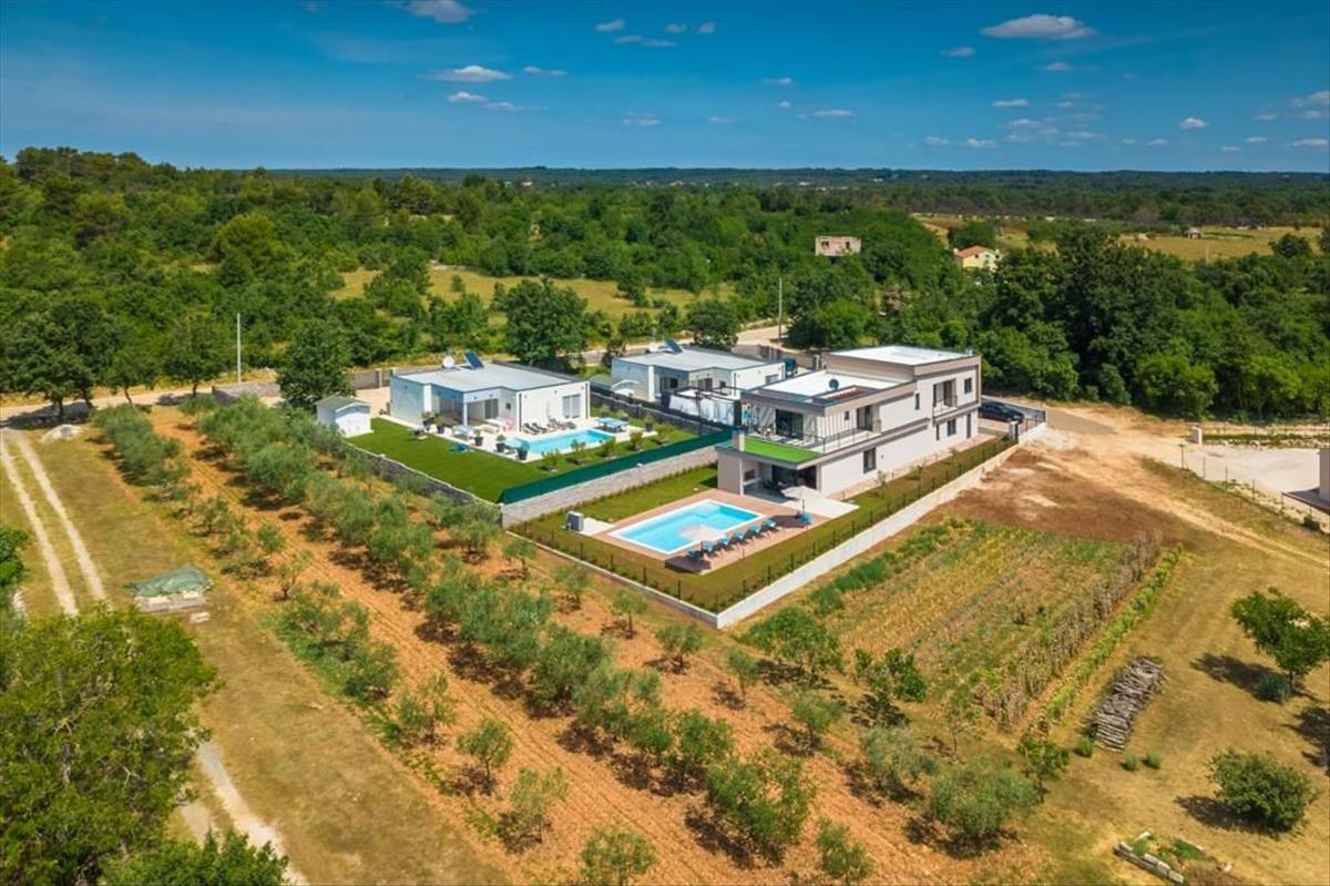 Ez a modern és elegáns villa mindössze néhány kilométerre található Svetvinčenat központjától, egy festői várostól Dél-Közép-Istria területén, tökéletesen elhelyezkedve Pula és Pazin között. Svetvinčenat gazdag zöldellő tájairól, szőlőültetvényeiről, erdeiről és történelmi bájáról ismert, híres a reneszánsz Placa teréről, a Morosini-Grimani várról, valamint a gazdag kulturális eseménynaptáráról, amely magában foglalja a Középkori Fesztivált, a Sajtfesztivált, a Táncfesztivált és a nonverbális színházi előadásokat.