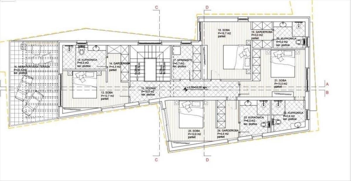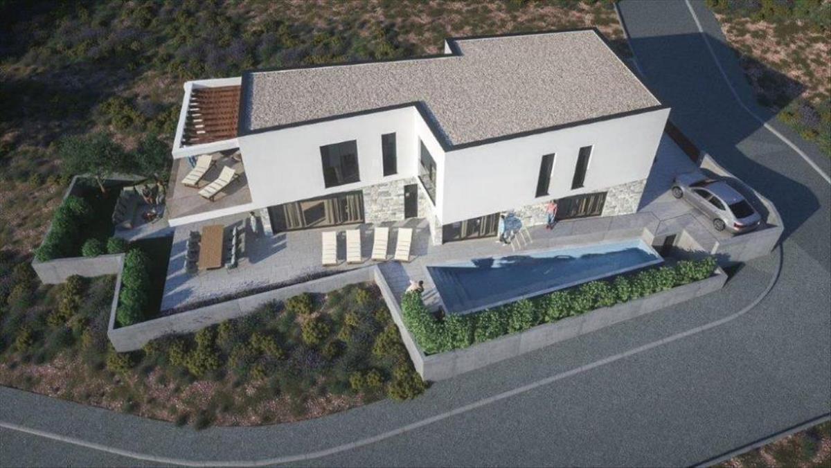 A nagyvonalú, 550 négyzetméteres telken elhelyezkedő, jelenleg nyers építési fázisban lévő villa két emeleten összesen 250 négyzetméteres területet ígér.