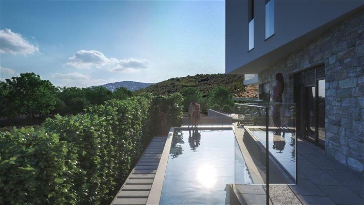 Primošten nyugodt külvárosában, a kristálytiszta tengertől mindössze 300 méterre, a város szívétől pedig 750 méterre található ez a gyönyörű ingatlan.