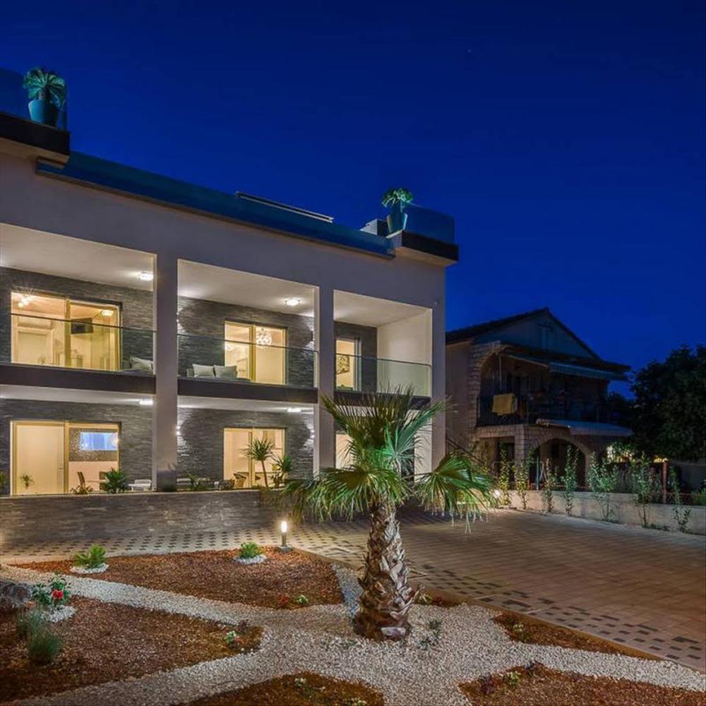 Gyönyörű villa tetőmedencével a híres Rogoznica turistahelyen.