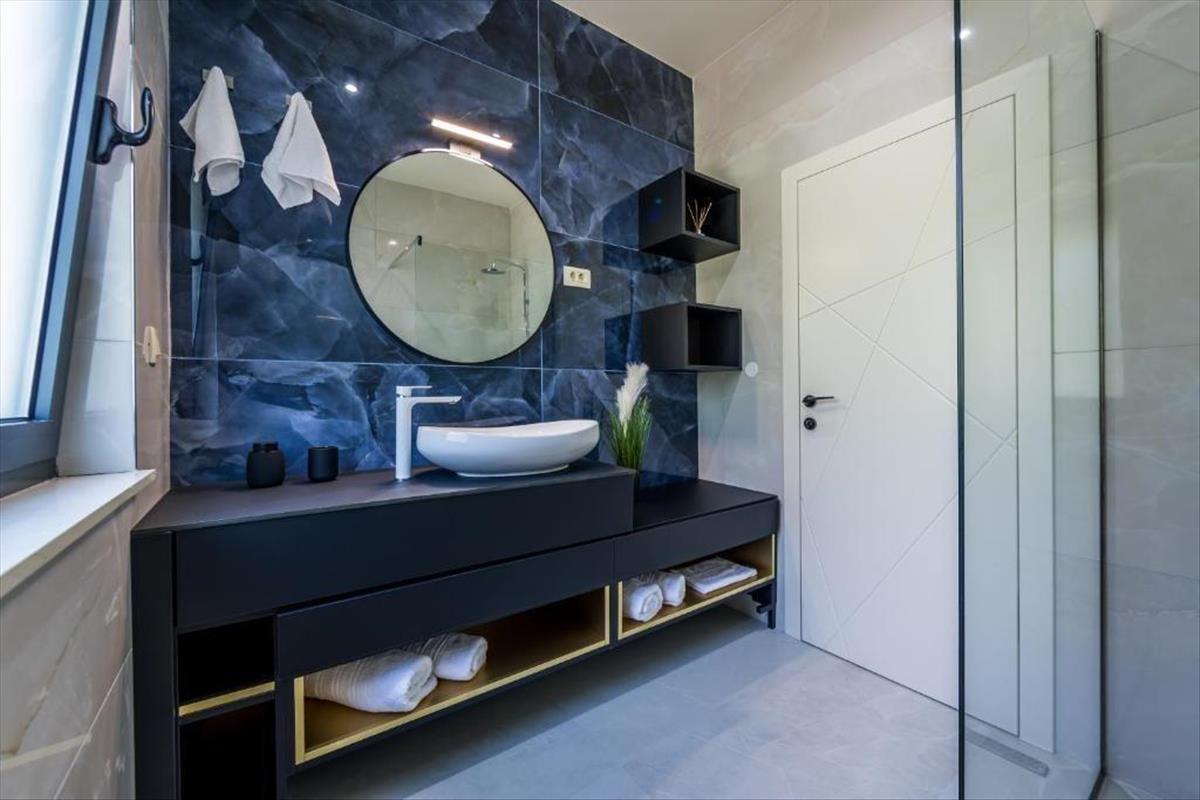 Büszkén mutatjuk be ezt a lenyűgöző, 400 m²-es villát, amely az elegancia és a stílus remekműve, mindössze pár percre Lovrantól és a strandtól. Ez a tágas otthon a luxus és a kényelem tökéletes kombinációját kínálja családi életnek vagy vendégek szórakoztatásának.