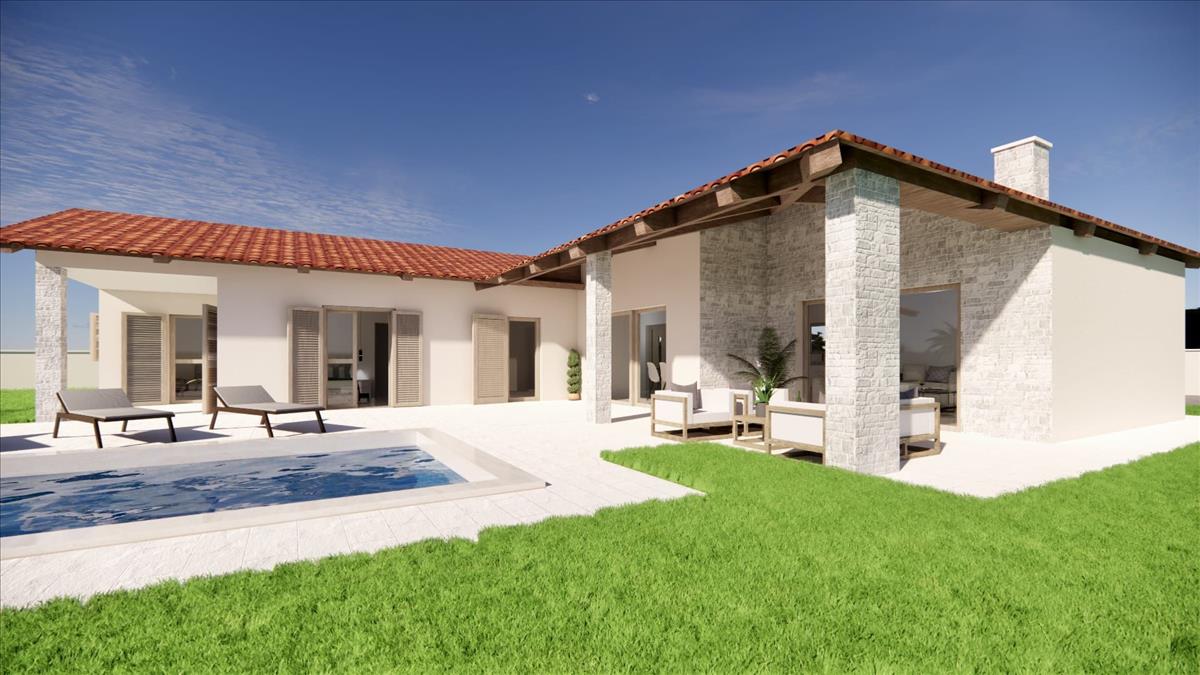 Önálló, egy szintes villát kínálunk medencével, mindössze 10 km-re a tengertől a Labin-Rabac térségében!A villa jelenleg építés alatt áll. Egy kis falu végén helyezkedik el, zöldövezettel és olajfaligetekkel körülvéve.