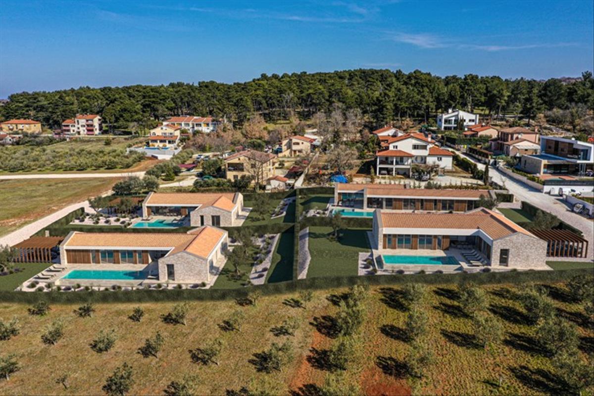 Modern stílusú, vonzó villa Višnjanban, Porecben, a négy luxusvilla új komplexumában, tengerre néző kilátással! Nem messze a festői Višnjan isztriai település központjától található ez a privát luxusüdülőhely, amely 4 villából áll, a modern és a hagyományos dizájn kombinációjával.