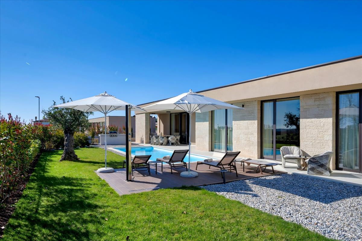 Fedezze fel a prémium ingatlanokat Horvátországban ezzel a gyönyörű villával, amely megvásárolható Porecben, Istria idilli vidéki ölelésében. a csendes falu peremén, mindössze 7 kilométerre a pezsgő Porec vonzerejétől és napfényes partjaitól, ez az ingatlan Istriában a tökéletes egyensúlyt kínálja a békés visszavonulás és a könnyű hozzáférés között. a villa 234 négyzetméternyi elegáns belső térrel rendelkezik egy buja 783 négyzetméteres telken, az új építés most teljesen befejeződött, és kulcsrakész bútorozott állapotban érkezik, lehetővé téve a zökkenőmentes beköltözést. Az Istriai ingatlanok kívánatos táján ez a lakóhely mesterien egyensúlyozza a térharmóniát, a napi szükségleteket, a zökkenőmentes hasznosságot, a robusztus építési integritást és az esztétikai bájt. Intim környezete megörökíti egy hangulatos istriai falucska valódi esszenciáját, elősegítve a magánéletet, a városi zajtól és stressztől való felszabadulást, valamint a világ zajaiból való megnyugtató pihenést – mindezt a türkizkék vizekhez és a modern kényelmekhez való izgalmas közelségben. Ez a kiváló hely panorámás kilátással bővül a zöld dombokra és a távoli tengerre, a ház pedig letisztult, előremutató dizájnjával és szerkezetével ragyog, amely a kifinomult modernitást és bájt árasztja, a legmagasabb szintű kézművességgel és berendezésekkel, amelyek tartós örömöt és emelt életminőséget ígérnek. Ez a kiemelkedő ajánlat a horvát ingatlanpiacon a kiemelkedő kényelmet nyújtó szolgáltatásokkal emeli a luxust, mint például a sto külső burkolat, a 280 cm magas mennyezetek, a wicona alumínium keretek a padlótól a mennyezetig terjedő ablakokhoz és ajtókhoz, elegáns Lestur belső ajtók rejtett alumínium keretekkel, prémium Lea Ceramiche kerámiák, Catalano szerelvények, luxus Hansgrohe és axor felszerelések, megbízható Whirlpool konyhai alapfelszerelések, egyedi bútorok elit gyártóktól, mint Alf Da Frè, Bonaldo, Doimo Salotti és Désirée, stílusos Varaschin terasz bútorok, puha Dorelan Millenaire r2 ágynemű, kézműves Flos és Ay Illuminate világítás, suttogó csendes Samsung WindFree klímavezérlés, hatékony Uponor radiáns padlófűtés, fejlett Vaillant aroTHERM plus hőszivattyú, villámgyors optikai szélessávú internet, figyelmes megfigyelő kamerák betörésjelzőkkel, korszerű Loxone otthoni automatizálás, Loxone elektromos jármű dokkoló pont, automatikus Husqvarna fűnyíró és precíz öntözőrendszer. a praktikum és a vizuális vonzerő prioritásával ez a villa Porecben egy szinten terül el, létrehozva egy világos menedéket, amely természetes fényben fürdik, és a kifinomult eleganciát és a zökkenőmentes kényelmet sugallja. Egy tágas nyitott elrendezésen keresztül áramlik, amely egyesíti a konyhát, az étkezőt és a nappalit egy hívogató zónába, amely egy árnyékos teraszra vezet, amely kültéri főzőállomással van felszerelve a kellemes összejövetelekhez. a tervezést négy pihentető hálószoba zárja, mindegyik saját fürdőszobával, egy vendégmosdóval, egy textil tárolóhelyiséggel és egy gépészeti támogató szobával. a gondosan megtervezett és körülhatárolt kertek fokozzák az Istriában megvásárolható ingatlan varázsát, a hőmérséklet-szabályozott medence és a napfényes pihenőzóna körül forogva, a végső kikapcsolódás érdekében. Ideális a családi boldogság ápolására vagy Istria vibráló nyaralási piacának kihasználására nyereséges bérbeadások révén, a villa stratégiai elhelyezkedése és a folyékony beltéri-kültéri elrendezés határtalan lehetőségeket nyit meg a horvát ingatlanpiacon.