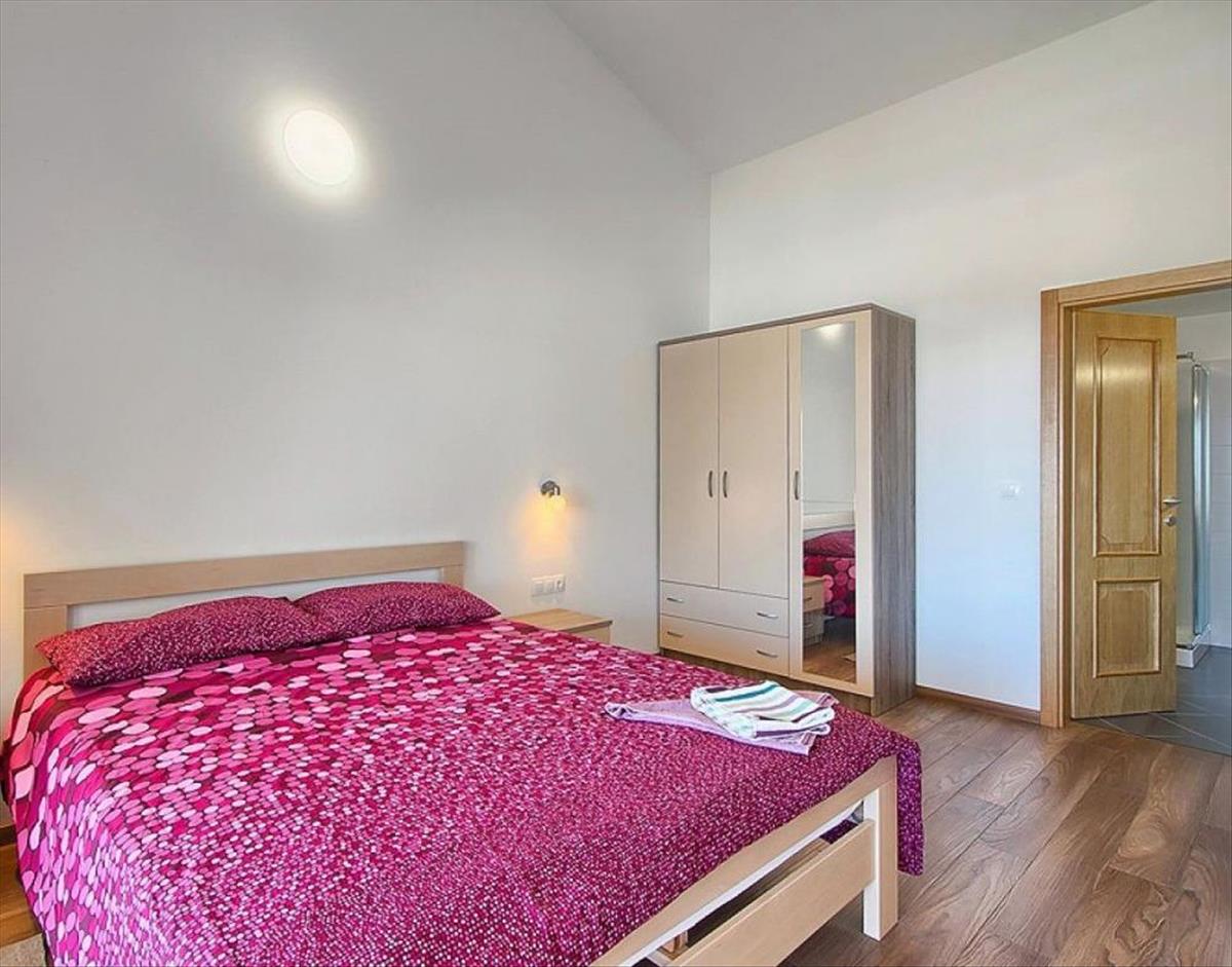 A felső szinten két tágas hálószoba található, mindegyik saját fürdőszobával és terasszal. Mindkét teraszról panorámás kilátás nyílik a tengerre és a környező területre.