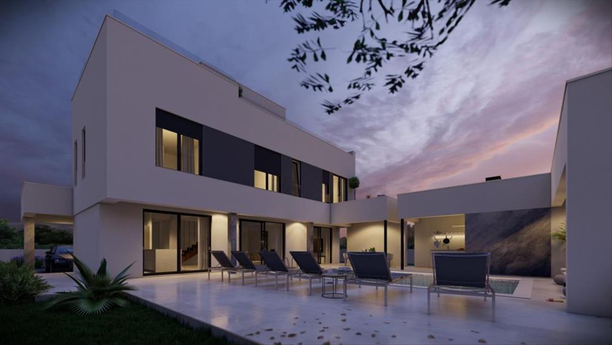 A csendes Zaton városában, Zadar külvárosában, mindössze 400 méterre a kristálytiszta tengertől, egy pompásan modern villa áll, amely a kortárs elegancia megtestesítője.