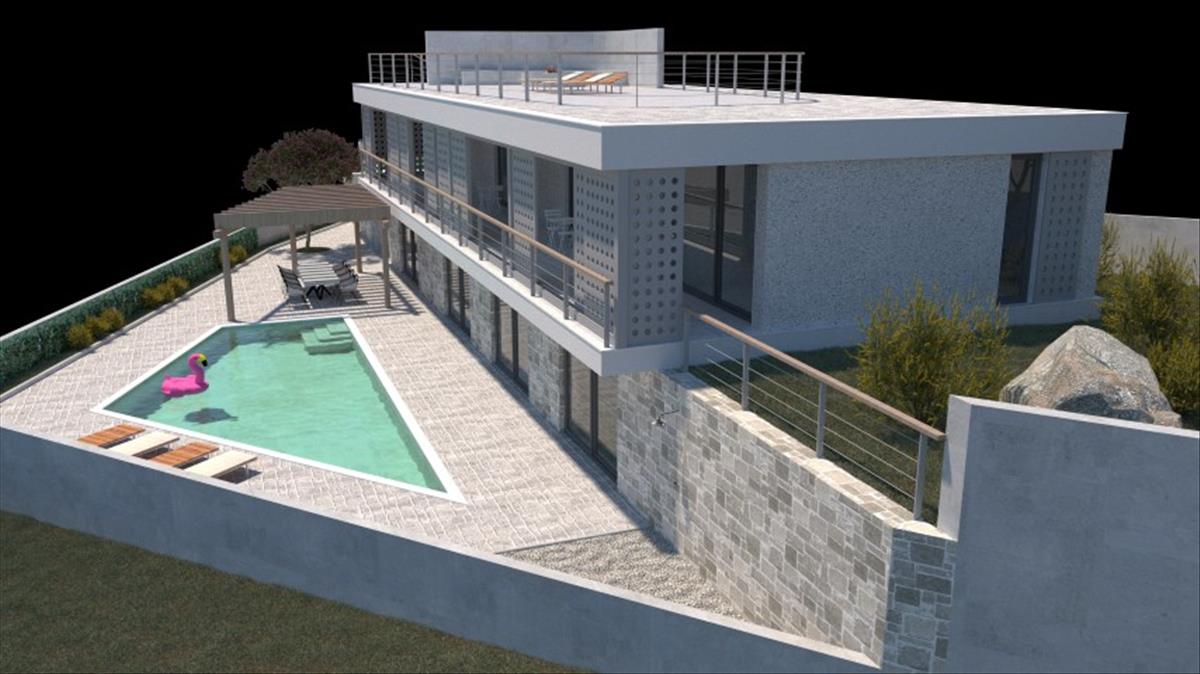Ez az exkluzív villa 197 m2 bruttó belső térrel egy földszintből és egy felső emeletből áll. 1003 Nm-es telken épül fel. Közvetlenül a tenger mellett.