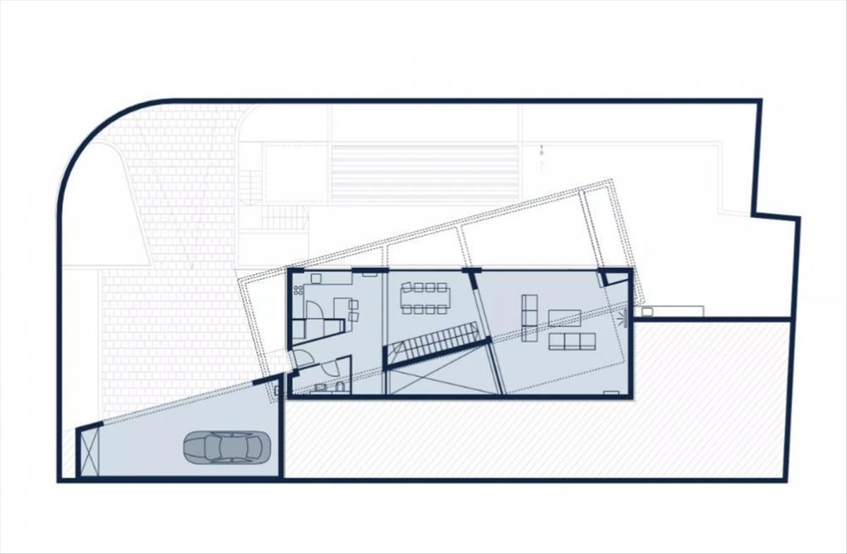 A 75 m2 összterületű nappali-étkezőből a napfényes lépcsőn keresztül juthatunk fel az emeletre. a lakónegyedben 4 hálószoba és 5 egyedi kialakítású fürdőszoba is elegendő helyet biztosít. a földalatti rész helyisége további funkcionális teret biztosít, mely saját kívánsága szerint berendezhető (pl. Pincészet vagy fitneszklub vagy moziterem vagy wellness részleg vagy játékrészleg).