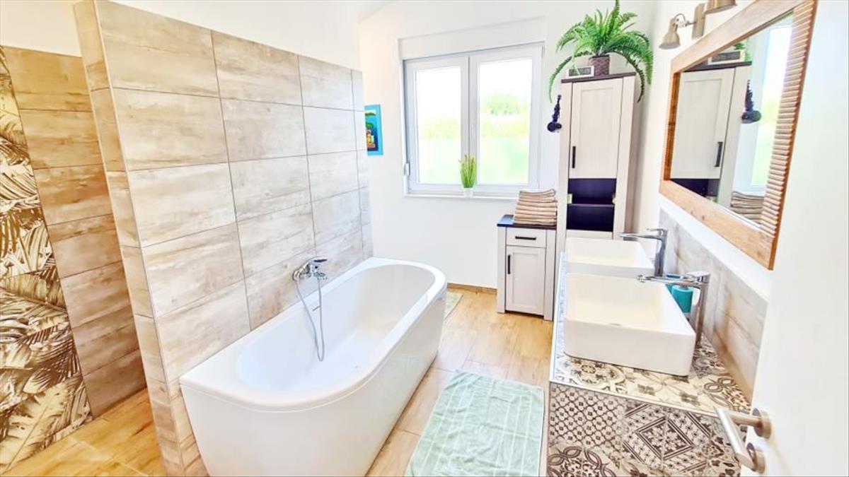 Építési és műszaki jellemzők:Vasbeton, hőszigetelő blokkok és lejtős vasbeton lemezekHármas üvegezésű ablakokEzeknek a jellemzőknek köszönhetően az ingatlan kiváló szigeteléssel rendelkezik. Az egyik legmodernebb fűtési és hűtési rendszert telepítették, beleértve a meleg vizet – a hitachi 3c ökológiai rendszer, amely minimális villanyszámlát biztosít. Elektromos redőnyök kerültek telepítésre a földszinti nagy üvegfalra. a medence betonból készült (vízálló beton), mérete 7, 60 m x 4, 10 m, mosott kavics borítással és mesterséges kőélekkel, az AstralPool technológia felhasználásával. a medence körül napozóterület található. a medencén kívül a kültéri térben nyári konyha és kültéri wc is található. Egyéb kültéri helyiségek közé tartozik egy nagy tárolóhelyiség és egy mosókonyha, amelyek bőséges tárolóhelyet és zavartalan tartózkodást biztosítanak. Az ingatlan parkolóhelyeket és elektromos tolókapukat tartalmaz a villa megközelítéséhez. a házban videó kaputelefon is található. További előny: Ez az ingatlan saját vízkúttal rendelkezik, körülbelül 56 méter mély, amelyet növények öntözésére és felületek tisztítására használnak. Ennek eredményeként minimális vízdíjak keletkeznek. Az ingatlan teljesen bútorozottan kerül értékesítésre. Ref: RE-U-38250