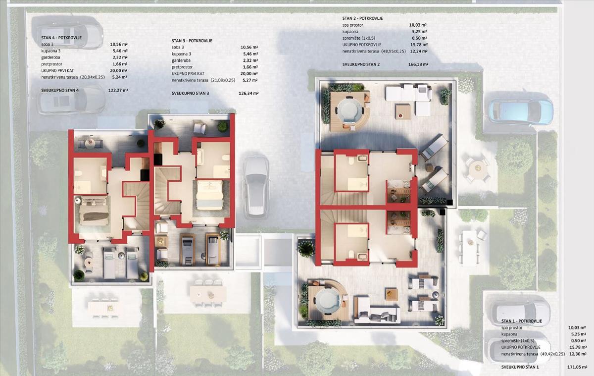 Ez az újonnan épült, 166 m² alapterületű félkész ház egy privát kerttel mindössze 2, 5 kilométerre található a tengertől és Poreč központjától, Istria egyik legélénkebb és legkeresettebb tengerparti városától.Poreč, amely egész évben élénk életstílusáról ismert, egyedülálló kombinációt kínál a pihenés, szórakozás, sport és gazdag kulturális örökség terén.