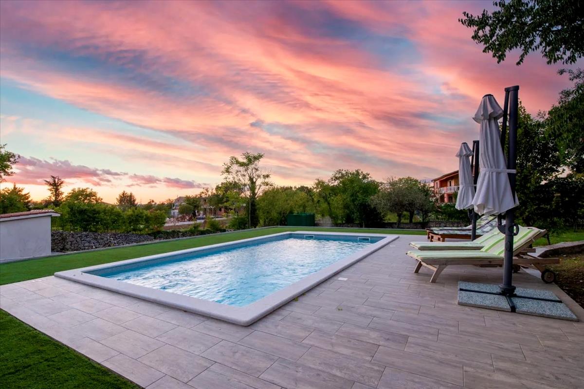 A 2, 220 m²-es tágas és teljesen bekerített telek területén a gondozott kert gondosan megtervezett, és egy 39 m²-es medencével rendelkezik napozóterülettel, amely ideális az istriai éghajlat élvezésére. Egy további 34 m²-es melléképület, amely jelenleg edzőteremként funkcionál, tovább növeli a kültéri tér funkcionalitását. Kiváló elhelyezkedésének, a belső és külső terek átgondolt elrendezésének, valamint a hagyomány és a modern kényelem egyedi keverékének köszönhetően ez a medencés kőház kiemelkedő lehetőséget jelent a kényelmes családi élethez vagy egy magas színvonalú befektetéshez a turisták bérlésében Labin közelében és az istriai parton. Ref: RE-U-44844
