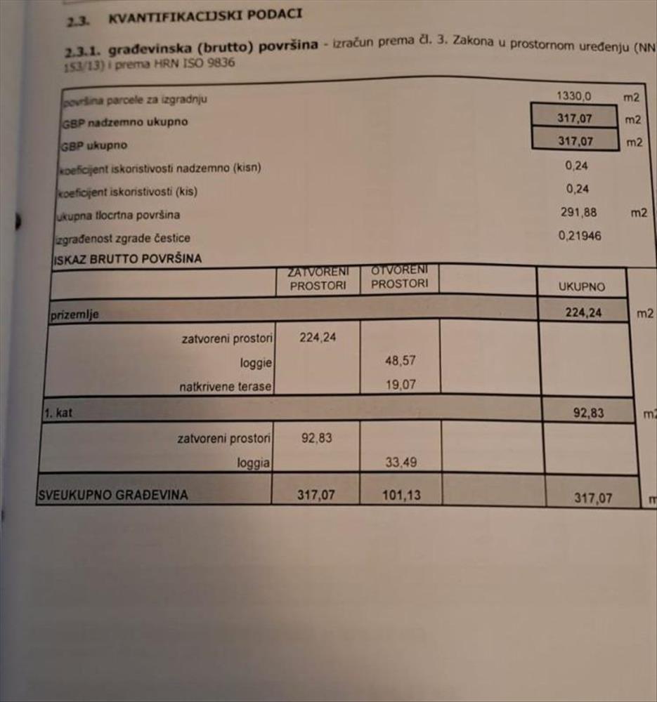 A teljes terület 317 nm. a telek 1514 nm. Földszintből és első emeletből áll.