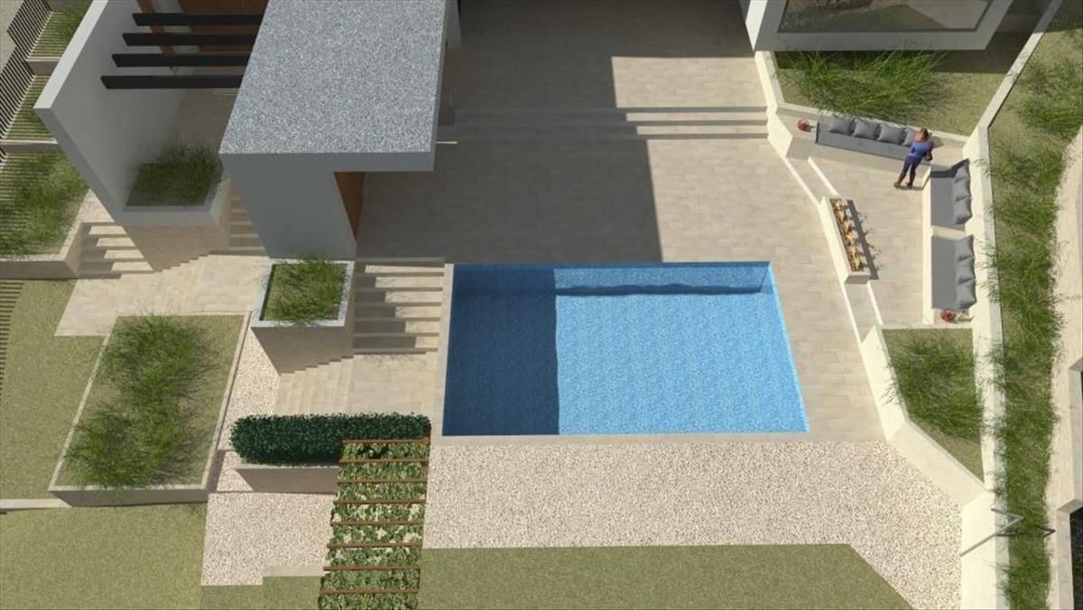 Az emeleten három hálószoba található loggiákkal és két fürdőszoba. a villa tágas udvarán úszómedence, kert, grillező és játszótér található. Saját parkoló 3 parkolóhellyel az udvarban lehetséges. Az épület bútorozatlanul, durva munkálatok (roh-bau) fázisában kerül eladásra. a villát igény szerint kiegészítheti.