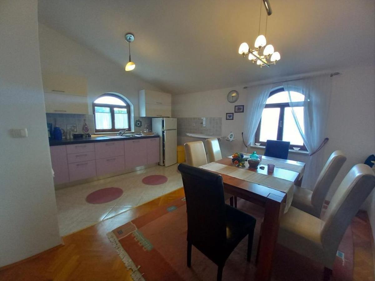 Ez a minőségi építésű, bruttó 394m2 alapterületű ház 877m2-es gyönyörűen parkosított kerttel elrendezésével és látványos tengeri kilátásával gyönyörködik. a földszinten található egy garázs, egy tároló mosókonyhával és egy nagy kétrészes taverna, amely bármilyen célt szolgálhat. Mindkét szinten két egyforma kétszobás lakás található, melyek egy tágas nyitott teret foglalnak magukban, melyben egy nappali, egy modern konyha étkezővel, egy hálószoba, egy gyerekszoba, egy wc és egy fürdőszoba található. Az 1. emeleti lakásban a nappaliból és a hálószobából lehet kimenni egy tágas fedett teraszra vagy a kertbe ahol úszómedence és grillsütő található. a második emeleti lakáshoz egy nagy terasz is tartozik, ahonnan hihetetlen kilátás nyílik a tengerre és a környező természetre. Ebben a házban klíma és fatüzelésű kandalló a fűtés, különleges hangulatot és meleget teremtve a hidegebb napokon. a kültéri terület gyönyörűen díszített, az udvar mediterrán növényeket és pázsitot áraszt, szép úszómedencével és grillezővel, valamint egy kertes házzal. Ez a ház mindössze 6, 5 km-re található az Ičići strandtól, egy könnyű 10 perces autóútra, és egy félreeső helyen található, zöldövezettel, gyönyörű családi házakkal és tengerre néző kilátással. a nyugalom és a nyugalom garantált. Kiváló déli tájolású, napkeltétől napnyugtáig napfényben és napfényben fürdőzik, így ideális lakhatásra, befektetésre és turizmusra. Ne hagyja ki ezt a lehetőséget! Ref: RE-U-41403