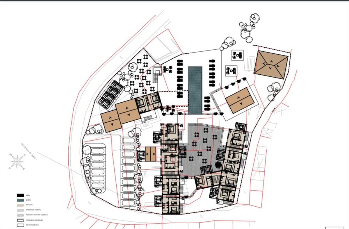 A tulajdon minden szükséges infrastruktúrával rendelkezik, és van egy koncepcionális projekt az összes ház építésére és felújítására.