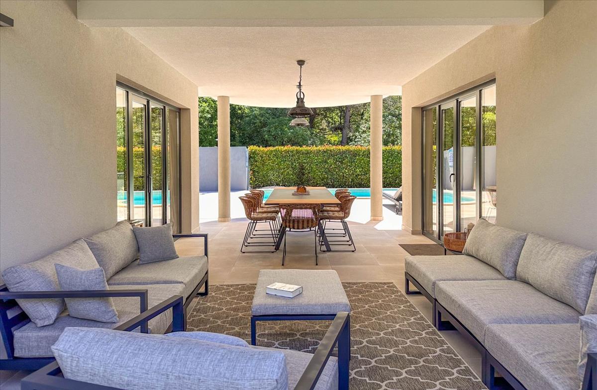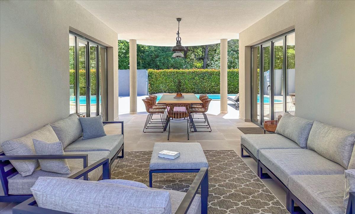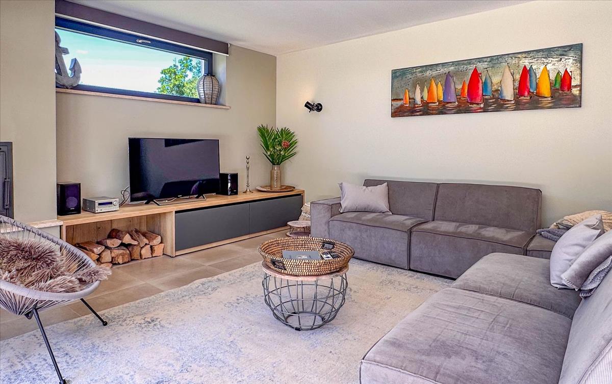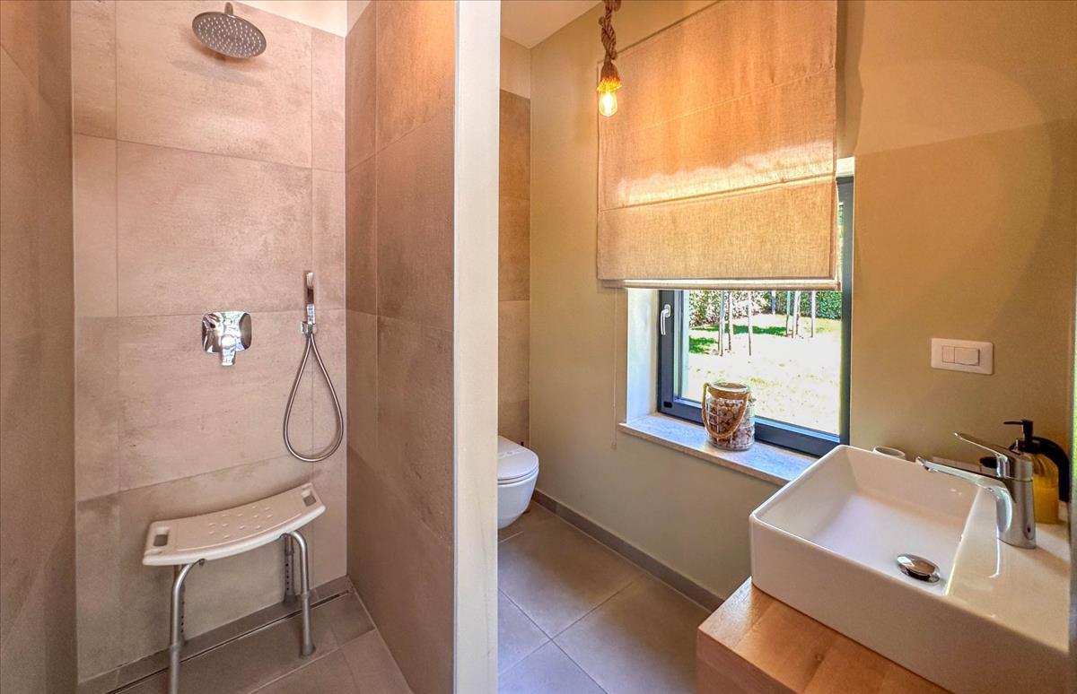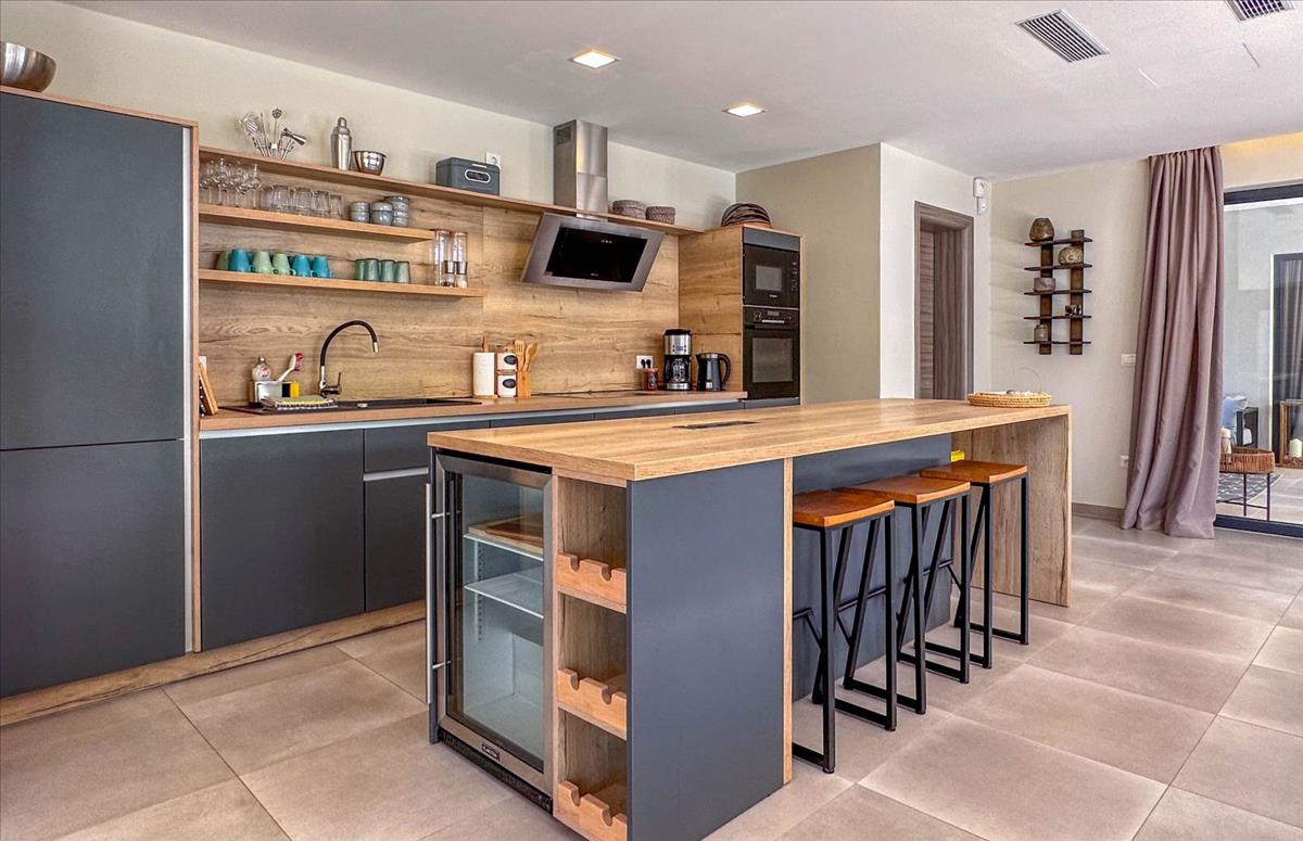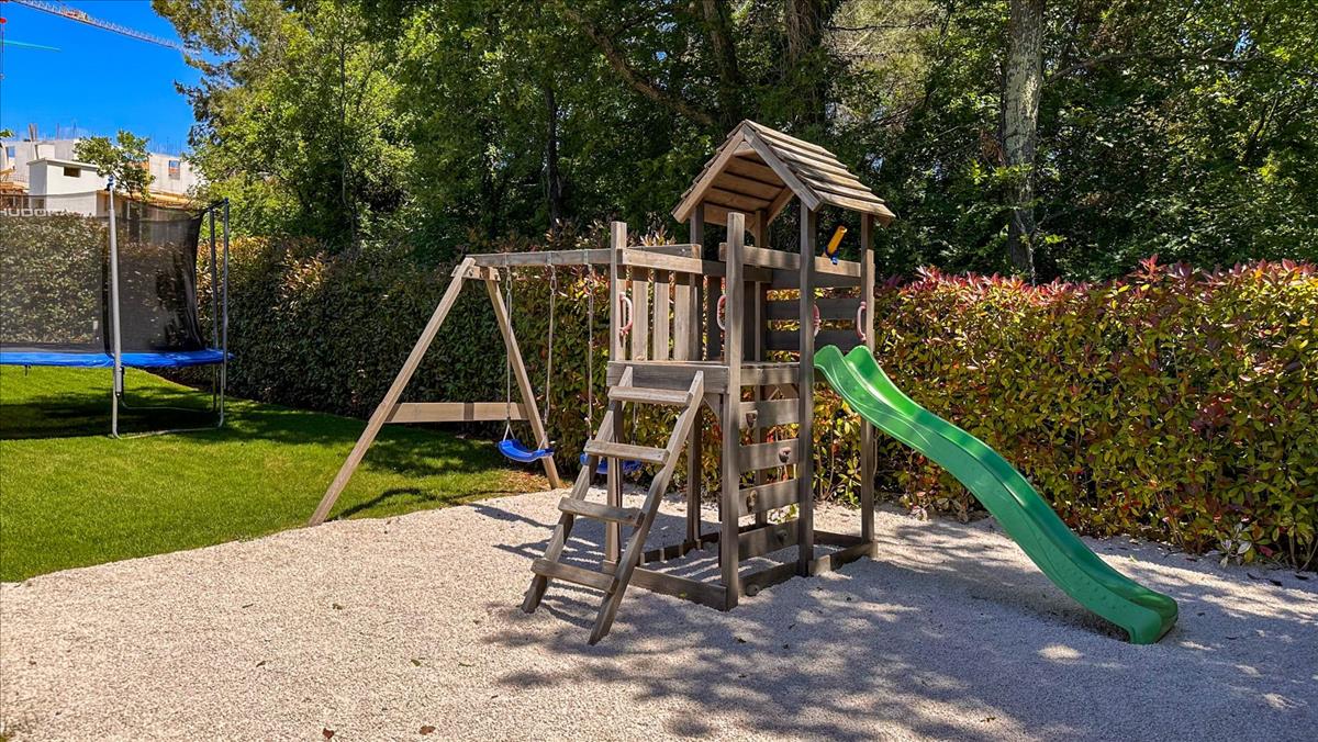 Egy nagy, gyönyörűen parkosított kertet egy 45m²-es fűtött sósvizes medence egészít ki, létrehozva egy luxus teret a kikapcsolódásra. További jellemzők közé tartozik a padlófűtés a fürdőszobákban, hűtőrendszerek az optimális kényelem érdekében, egy rusztikus kandalló a meghitt estékre, és egy modern biztonsági rendszer videó megfigyeléssel és riasztóval a nyugalom érdekében. Négy parkolóhely és mozgáskorlátozottak számára kialakított hozzáférés biztosítja, hogy ez az otthon zökkenőmentesen ötvözze a funkcionalitást, eleganciát és kényelmet. Élvezze a luxust minden fordulónál, élvezze a közelséget a tengerhez és a természethez, és hozzon létre felejthetetlen pillanatokat ebben a kivételes otthonban, amely felülmúlja az összes elvárást.