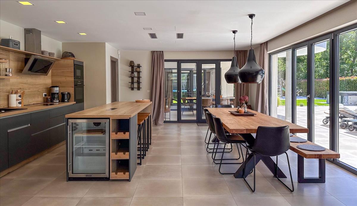 Az emeleten négy gyönyörűen megtervezett hálószoba található, mindegyik saját fürdőszobával és hozzáféréssel rendelkezik egy teraszhoz, ahonnan lélegzetelállító kilátás nyílik a környező zöld területekre. a kültéri terület egy privát oázist kínál egy kerti házzal, szaunával, fitneszteremmel és játékszobával—tökéletes a pihenésre és a szórakozásra.