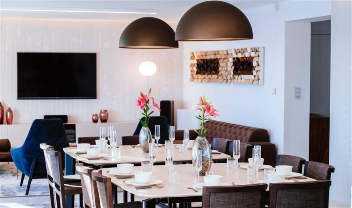 Minden emeleten külön lakóegység található, és teljesen felszerelt a legújabb berendezésekkel és dizájner belsővel. Minden lakóegységben két hálószoba, két fürdőszoba, tágas szalon konyhával és tengerre néző terasz található.