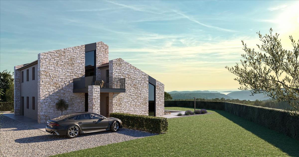 Gyönyörű designer villa Rovinj külvárosában, Kanfanarban! Örömmel kínáljuk eladásra ezt a lenyűgöző dizájner villát, amely alig több mint 10 km-re található a tengertől Rovinj közelében. Az ingatlan nagyon csendes környéken található, mégis jó közlekedési kapcsolatokkal rendelkezik. Az építkezést Horvátországban egy igen elismert tervező és építész felügyeli. a tervezett befejezési dátum 2026 közepe.