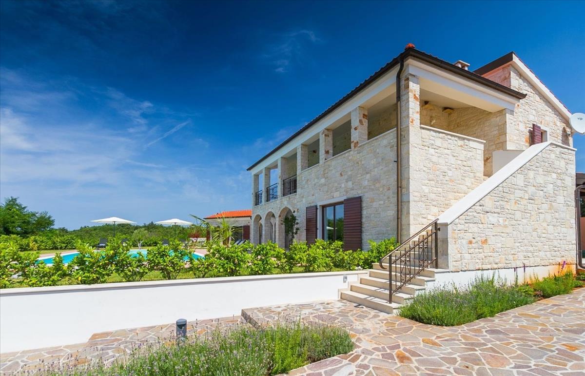 Impozáns mediterrán kővilla a Sveti Lovrec környékén, Porectól 14 km-re a tengertől.A 250 m²-es villa, amelyet 2014-ben építettek, teljesen kőburkolattal rendelkezik, tökéletes keveréke a hagyományos és a modern stílusnak, és egy olyan lakóegységként van megtervezve, amely két ízlésesen berendezett és jól felszerelt emeleten terjed el.