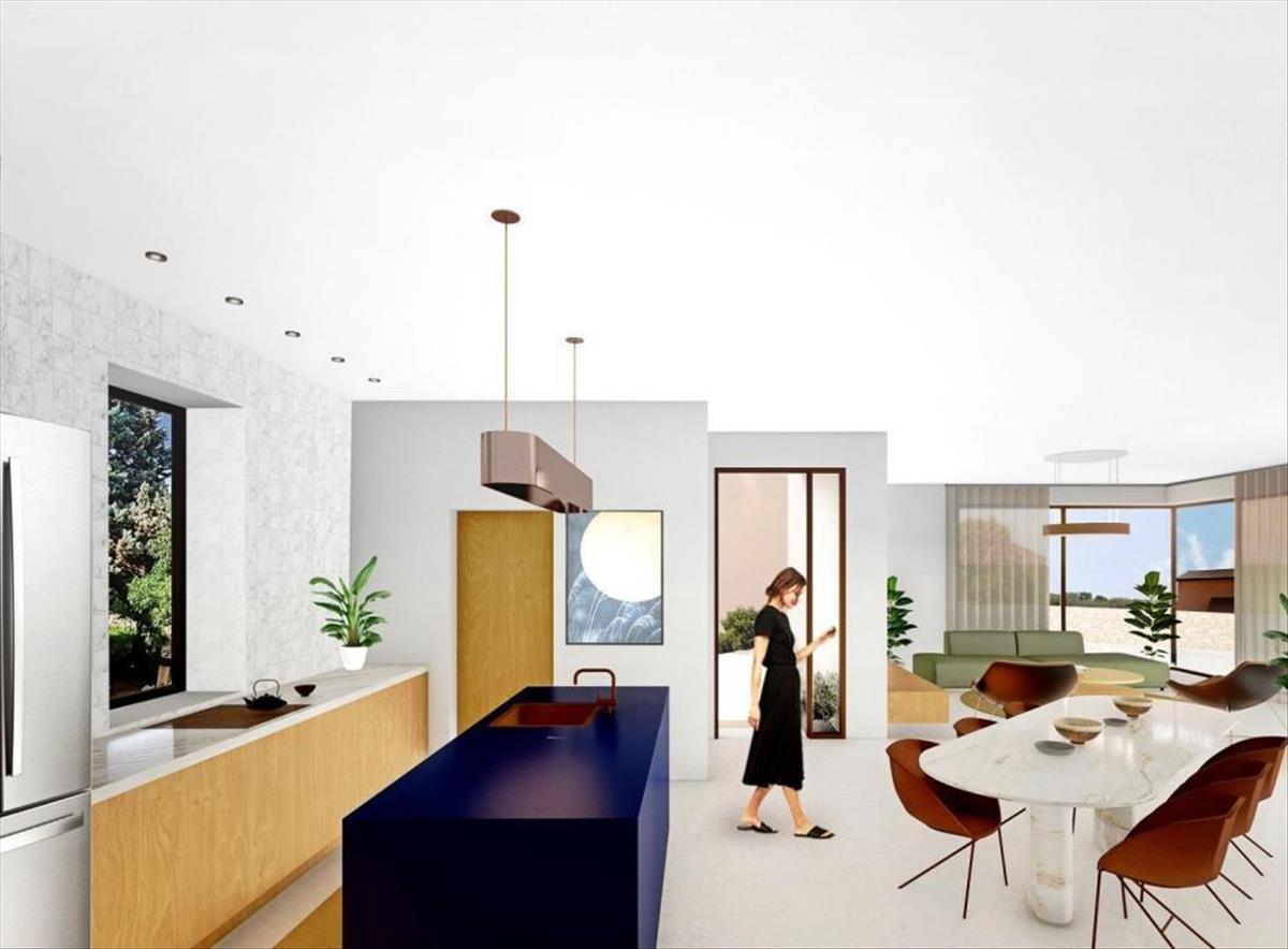 A földszint egy nyitott térré bontakozik ki, amely zökkenőmentesen köti össze a nappalit, az étkezőt és a konyhát, közvetlen kijárattal a nyári konyhával rendelkező teraszra. a földszinti elrendezést kiegészíti egy hálószoba, fürdőszoba, kamra, tároló helyiség, kazánház. a felső szintre feljutva három hálószoba nyílik, mindegyik saját fürdőszobával és terasszal.