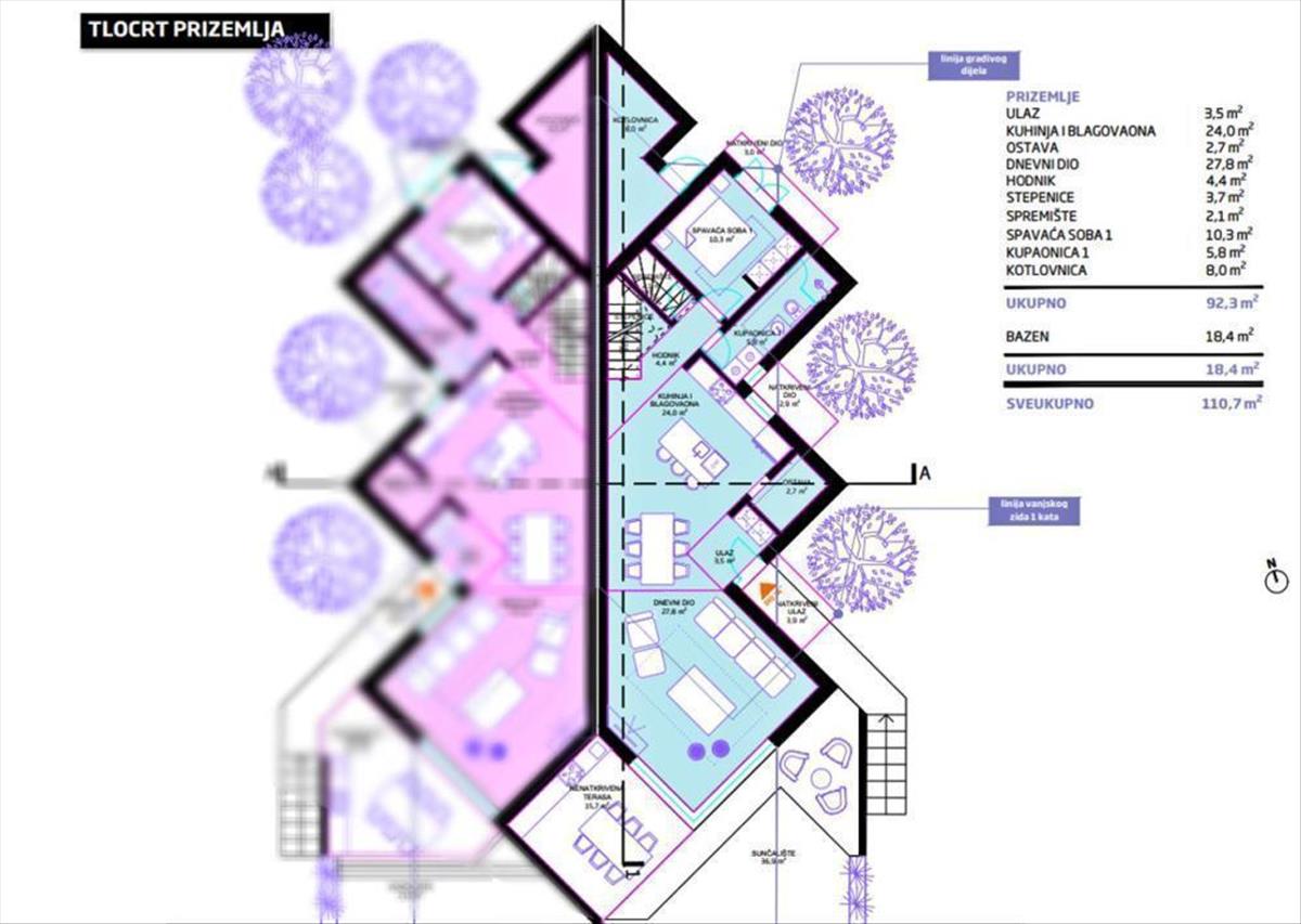 Eredeti tervezésű új épület úszómedencével Umag környékén, tengerre néző kilátással, 5 km-re a tengertől!