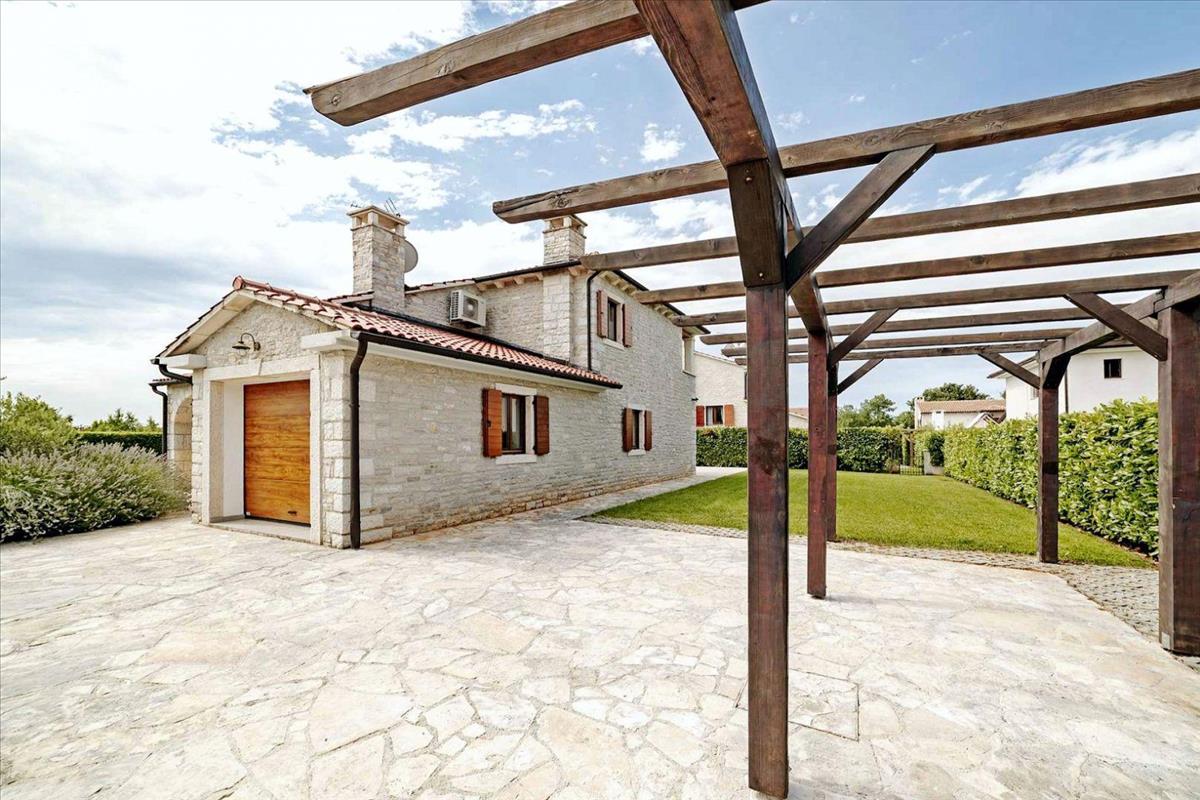 Az ingatlan egy csendes és zöld lakóövezetben található Višnjan közelében, családi házak és nyaralók által körülvéve, békés életstílust kínálva, miközben könnyen elérhető a tengerparti városok, strandok, éttermek és turisztikai infrastruktúra. Maga a ház rusztikus istriai stílusban készült, teljes kőburkolattal, ötvözve a hagyományos építészetet a modern építési normákkal és magas minőségű anyagokkal, ami kulcsfontosságú tényező a hosszú távú érték és bérbeadási vonzerő szempontjából.