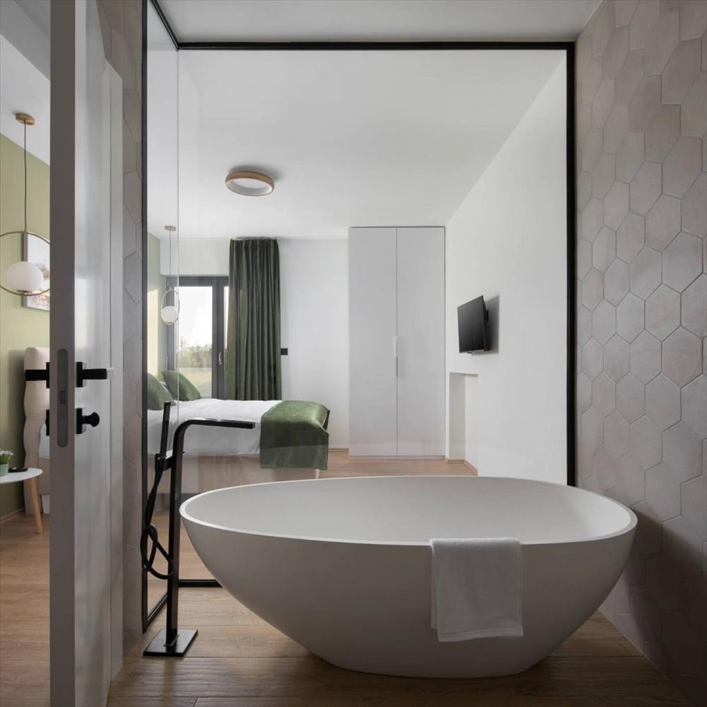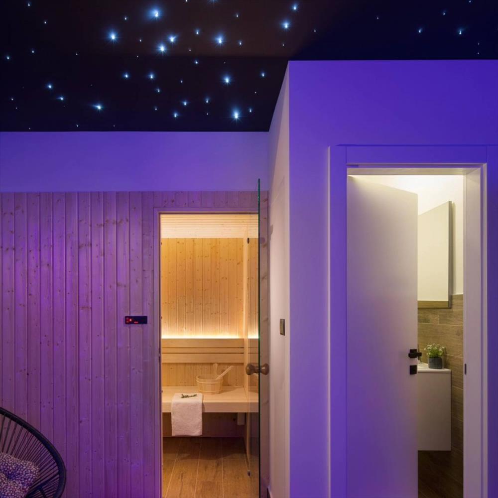 A földszinten wellness részleg található szaunával, edzőterem saját fürdőszobával, hálószoba saját fürdőszobával, valamint praktikus segédhelyiségek, mint például mosókonyha, wc, műszaki helyiség és tároló. Az emeleten három luxus hálószoba mindegyike saját fürdőszobával és hozzáféréssel rendelkezik egy pergolával ellátott fedett teraszra, lenyűgöző kilátással és szabadságérzettel.