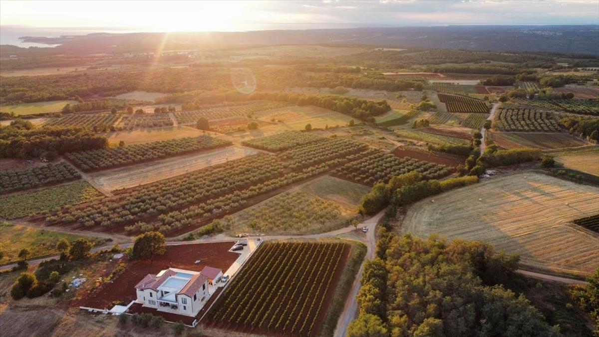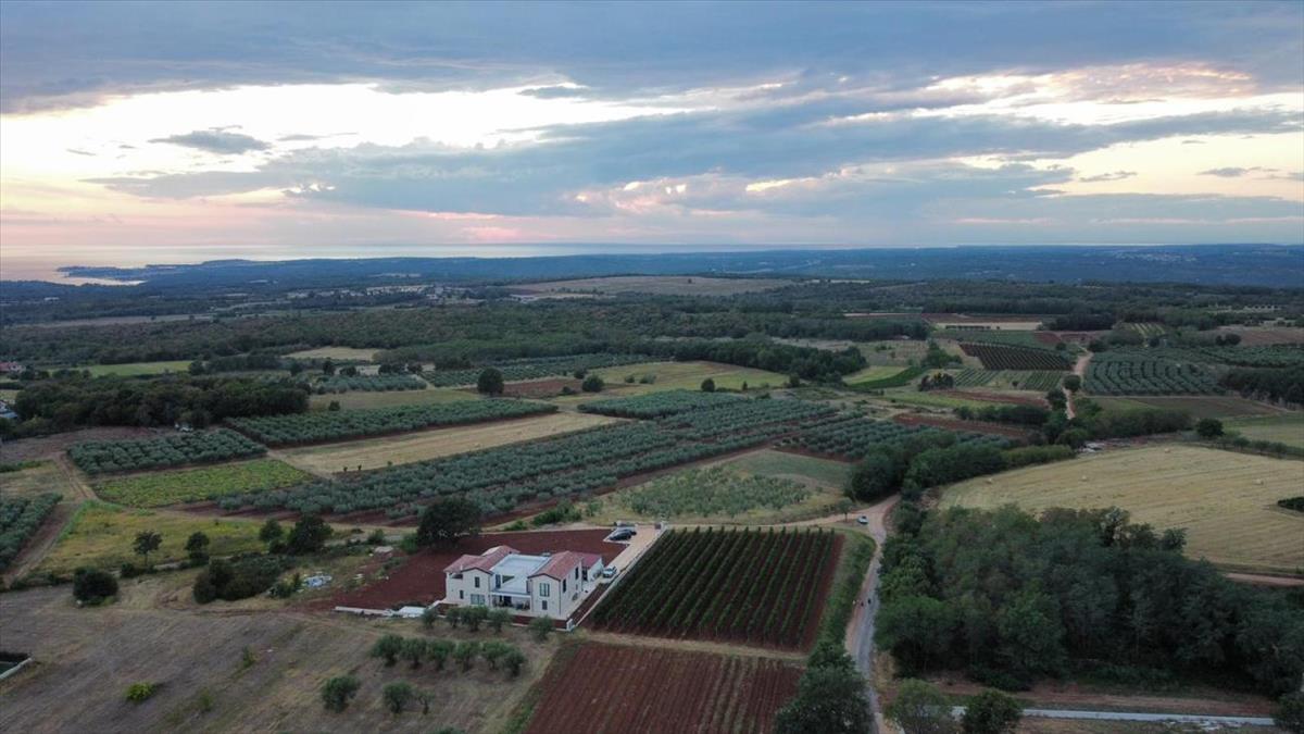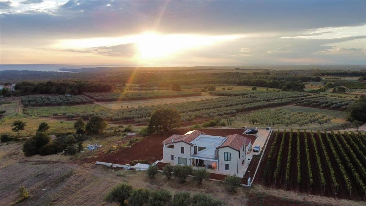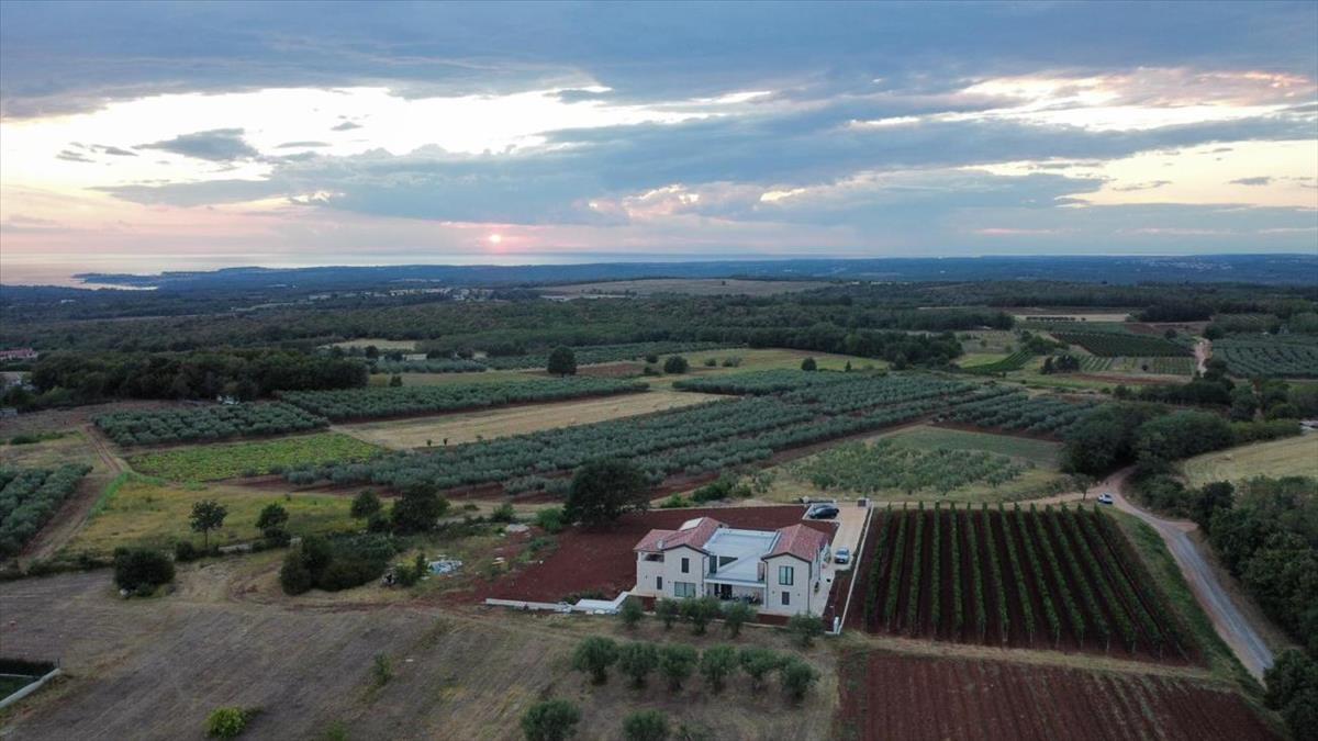Ez a kivételes villa eladó Horvátországban, Isztria nyugati részén található, mindössze néhány percre Porečtől - a félsziget egyik legkeresettebb és legfestőibb városától. Egy magaslaton helyezkedik el, buja mediterrán zöldövezettel körülvéve, és megszakítás nélküli kilátást nyújt az Adriai-tengerre, ez egy ritka lehetőség, hogy vásároljon egy villát Isztriában, amely a luxust, a magánéletet és az időtlen természeti szépséget ötvözi.