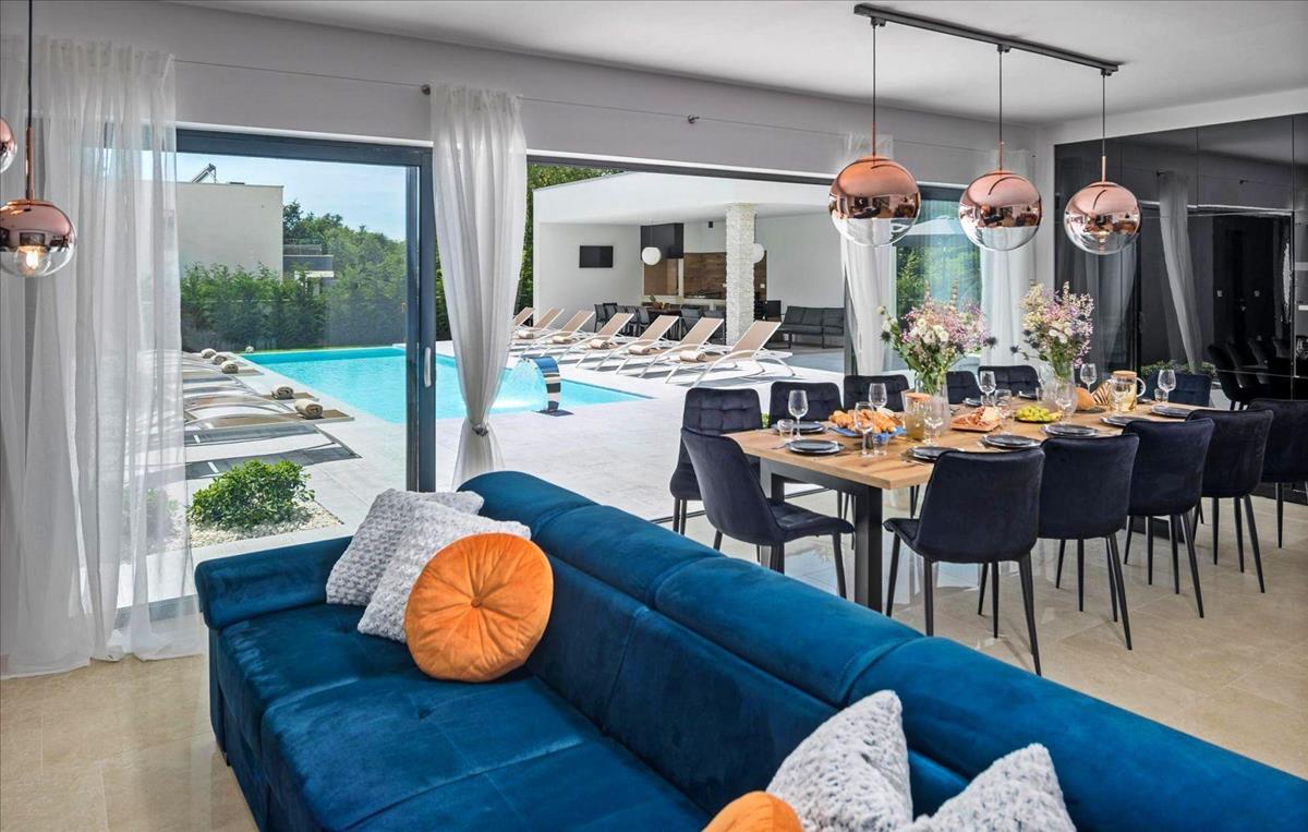 Sürgős eladás! Modern luxus villa eladó a tenger közelében Rovinjban, mindössze 17 kilométerre az Adriai parttól és a történelmi városközponttól, 308 négyzetméternyi lakóterülettel egy tágas, 1, 138 négyzetméteres telek területén.