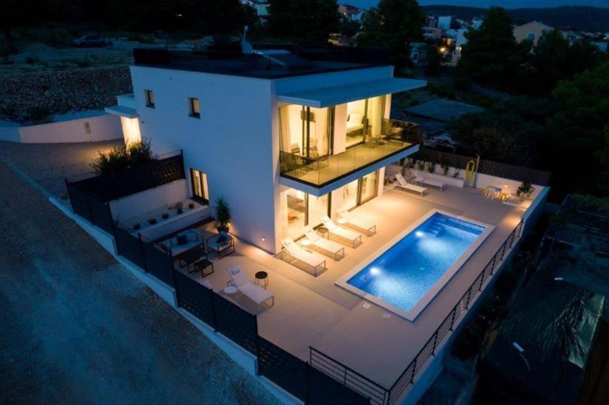 Vadonatúj, modern villa Ciovo szigetén (félszigeten), ahonnan lélegzetelállító kilátás nyílik a tengerre és a szomszédos szigetekre, stratégiailag, mindössze 100 méterre a parttól.