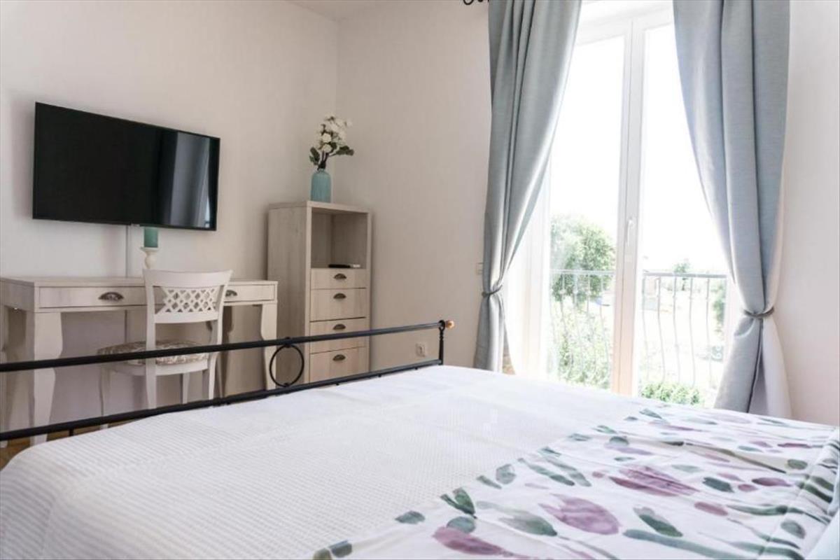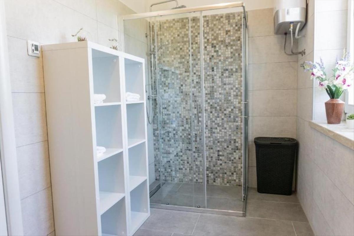 A villa első emeletére falépcsőn lehet feljutni, ahol három kényelmes hálószoba található, amelyek mindegyikéhez saját fürdőszoba tartozik. Mindegyik hálószoba nagyobb méretű, a falakat pedig különleges részletek díszítik, amelyeket a tulajdonosok ugyanúgy igyekeztek kiemelni, mint a villa földszintjén. Minden hálószoba hagyományos isztriai kőstílusban díszített, a meleg és a szemet gyönyörködtető színek jó kombinációjával.